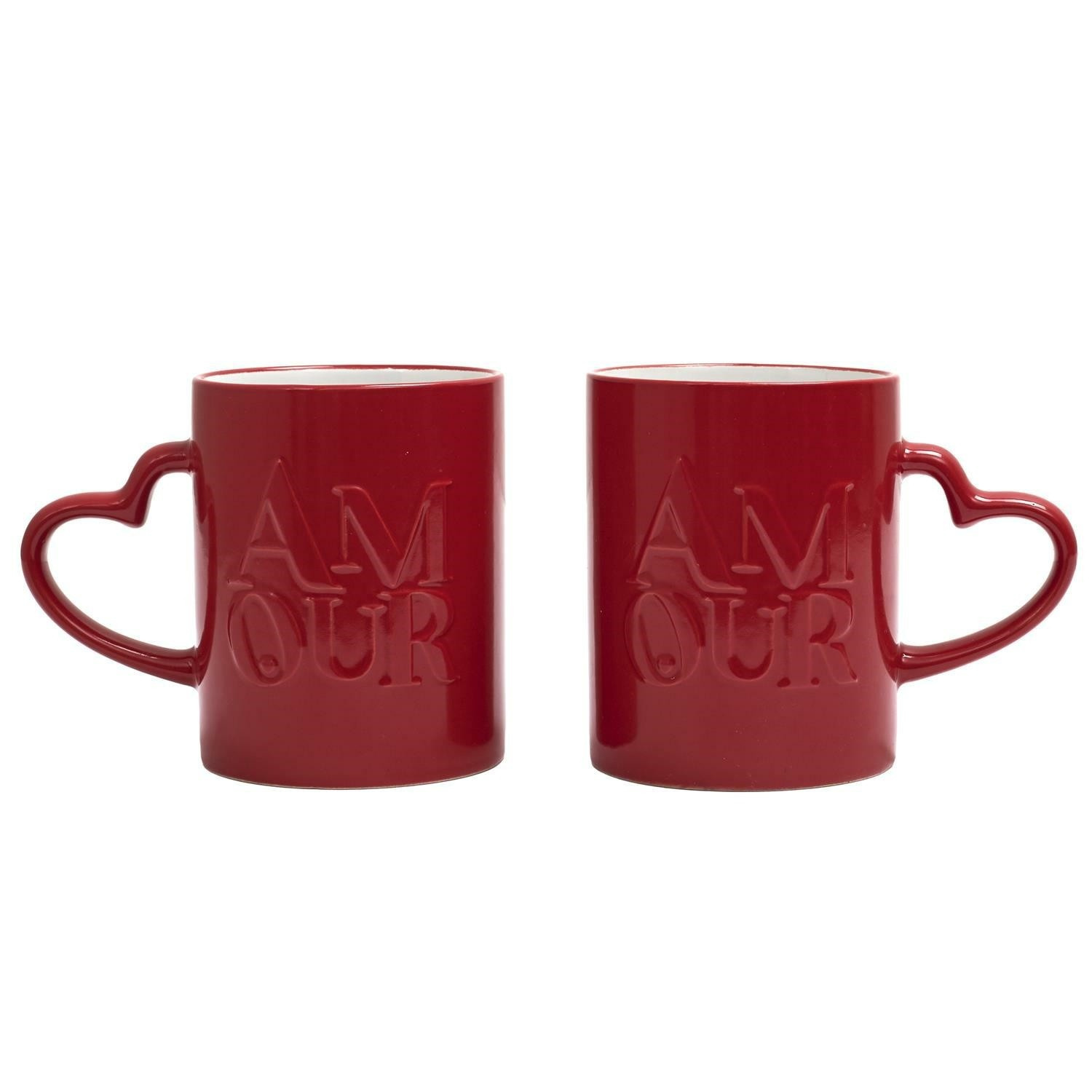 Romantická sada dvou hrnků s uchem ve tvaru srdce je nezbytností letošního Valentýna nebo výročí svatby! Sada dvou hrnků s nápisem Amour dodá pikantnost při večerním horkém čaji ve dvou. Hrníčky o objemu 300 ml jsou sadou, která k sobě ladí a tvoří ideální doplněk pro domácí rande ve dvou. Hrníčky vyrobené z keramiky. Lze je mýt v myčce. Lze používat v mikrovlnné troubě.