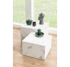 Sada 2 čtvercových konferenčních stolků Dice, deska a základna z MDF desky a dýhy připomínající bílý mramor Carrara. Dovol, aby tato sada konferenčních stolků našla své místo ve tvém obývacím pokoji. Od čtvercového tvaru po mramorový vzhled - určitě na sebe upoutají pozornost. Použij je jako konferenční stolek nebo je umísti do rohu s velkou rostlinou nebo vázou, aby vynikla souprava. Rozměry velkého stolku: 58x58x40cm, rozměry malého stolku: 50x50x33cm.