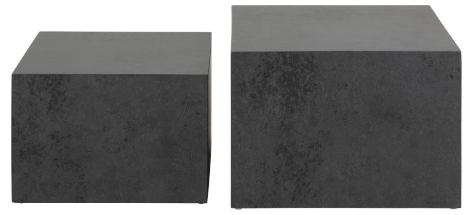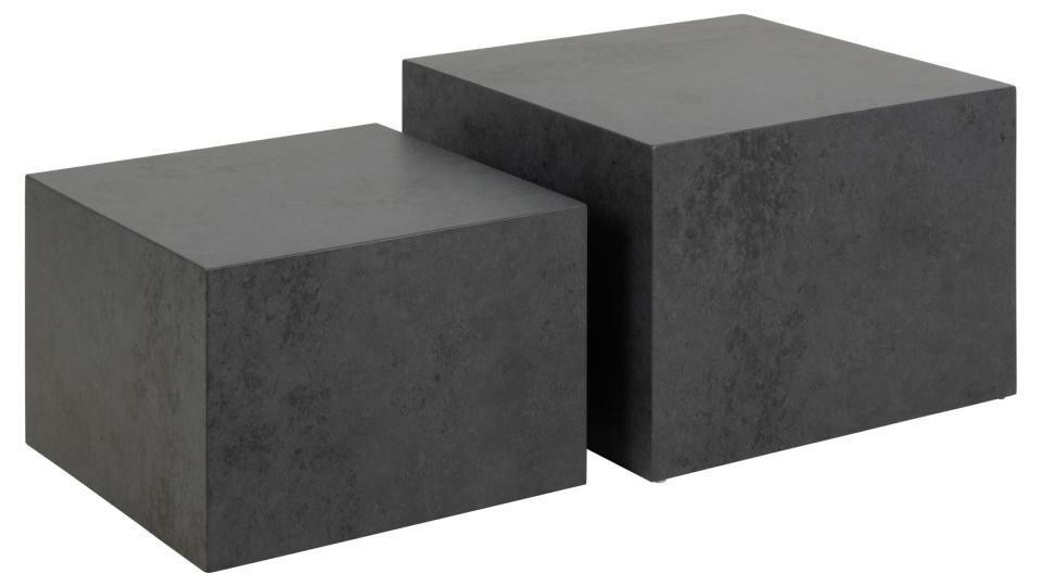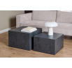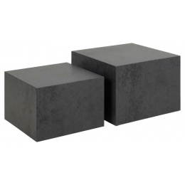 Sada dvou stolků ve tvaru krychlí (58x58x40;50x50x33). Jsou pokryty laminátem s vzorem černého kamene. Stolky budou skvěle vypadat v elegantním obývacím pokoji. Mohou také sloužit jako květinové záhony. Zespodu mají malé plastové nožičky, které chrání podlahu před poškozením. Počet kartonů: 1 Rozměry kartonů: 65x46x65cm Hmotnost kartonů: 23,5kg