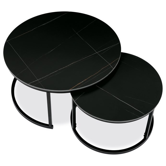 Dvojice stolů z naší nejnovější kolekce, vyrobená renomovanou značkou Autronic, krásně spojuje funkčnost s industriálním šikem. Spékaná keramická deska zdobená výrazným mramorovým dekorem představuje působivou vizuální eleganci, která doplní každý kancelářský prostor, konferenční místnost nebo domácí jídelnu. Její kruhový tvar a elegantní černý odstín jí propůjčují atmosféru sofistikovanosti, která bez námahy zvýrazní její okolí.