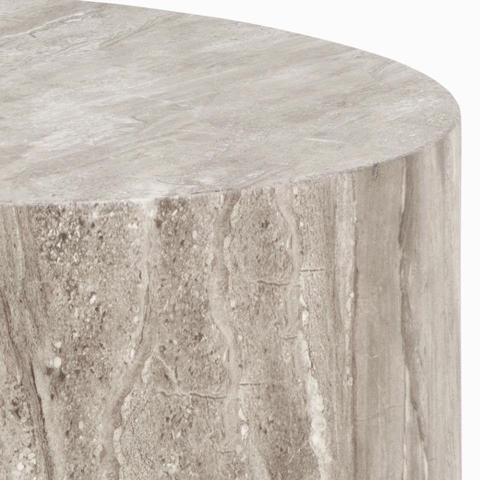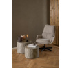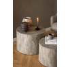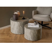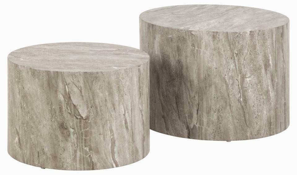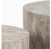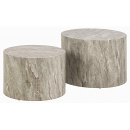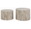 Sada 2 kulatých konferenčních stolků Dice vyrobených z MDF desky s dýhou imitující přírodní kámen. Umístěné před pohovkou nebo z boku, tyto kulaté konferenční stolky dodají elegantní vzhled vašemu obytnému prostoru. Ať už stojí spolu, nebo samostatně, vytvářejí vizuálně zajímavý bod, který přitahuje pozornost. Jejich aerodynamický tvar a dýha imitující přírodní kámen přinášejí moderní a neobyčejně elegantní vzhled, díky čemuž se hodí do každého stylu interiéru. Rozměry stolků: větší: průměr 58 cm, výška 40 cm a menší: průměr 50 cm, výška 33 cm