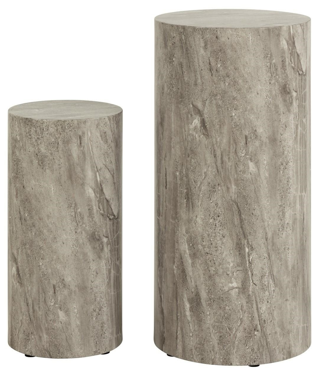 Udělejte dojem se sadou stolků Dice. Jeho všestranné použití umožňuje různé možnosti stylizace v celém domě. Umístěte je do rohu nebo na chodbu s rostlinou nebo vázou, aby vynikly. Od kulatého tvaru po travertinový vzhled - tyto podstavce jistě upoutají pozornost. Moderní kulatý podstavec s mramorovým vzhledem, poutavý tvar. Trvanlivý povrch, který se snadno čistí. Navrženo Christinou Aagaard a chráněno výhradně pro Acton. Vyrobeno z MDF desky zdobené papírovou dýhou imitující šedý mramor. Sada obsahuje dva stolky: O34x70 cm; O25x50 cm