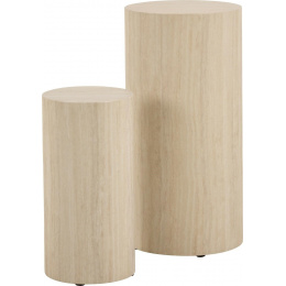 Udělejte dojem se sadou stolků Dice. Jeho všestranné použití umožňuje různé možnosti stylizace v celém domě. Umístěte je do rohu nebo na chodbu s rostlinou nebo vázou, aby vynikly. Od kulatého tvaru po travertinový vzhled - tyto podstavce jistě upoutají pozornost. Moderní kulatý podstavec s travertinovým vzhledem, poutavá forma. Trvanlivý povrch, který se snadno čistí. Navrženo Christinou Aagaard a chráněno výhradně pro Acton. Vyrobeno z MDF desky zdobené papírovou dýhou imitující travertin. Sada obsahuje dva stolky: O34x70 cm; O25x50 cm