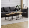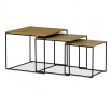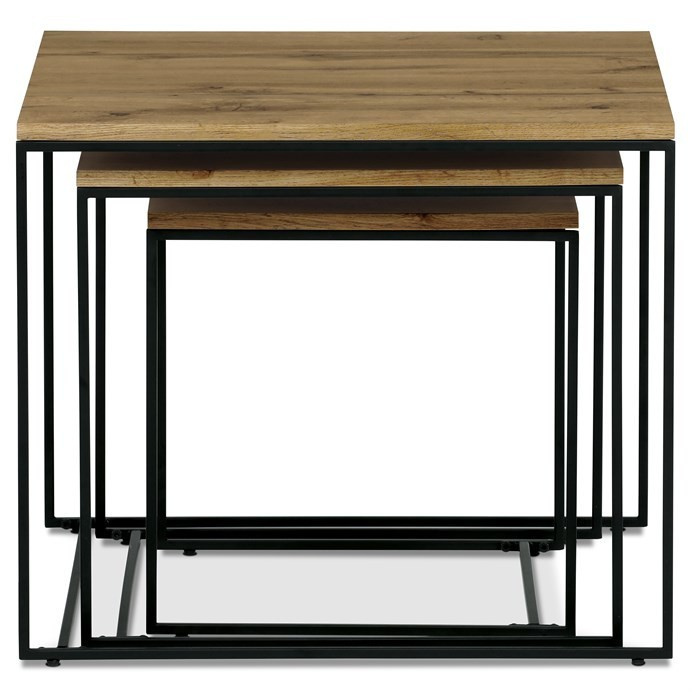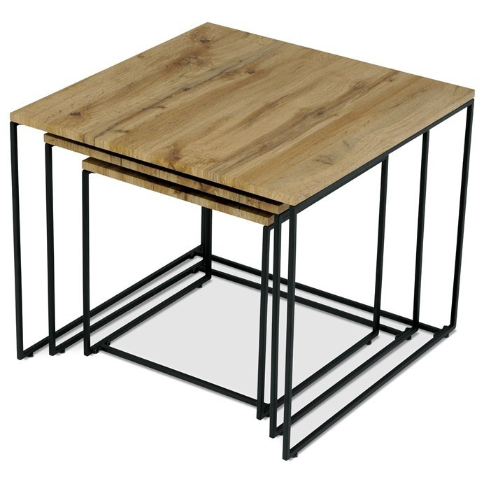 Tato sada tří konferenčních stolků, vyrobená uznávanou značkou Autronic, se stává nezbytným doplňkem každého prostoru, který si potrpí na styl i praktičnost. Díky robustní desce ze středně husté dřevovláknité desky (MDF) zdobené dubovým dekorem vnese tato sestava do obývacích pokojů, kanceláří nebo konferenčních prostor hřejivou a příjemnou atmosféru. Čtvercový tvar horní desky elegantně vyvažuje industriální estetiku s univerzálností, takže je ideální volbou pro různé motivy interiéru.