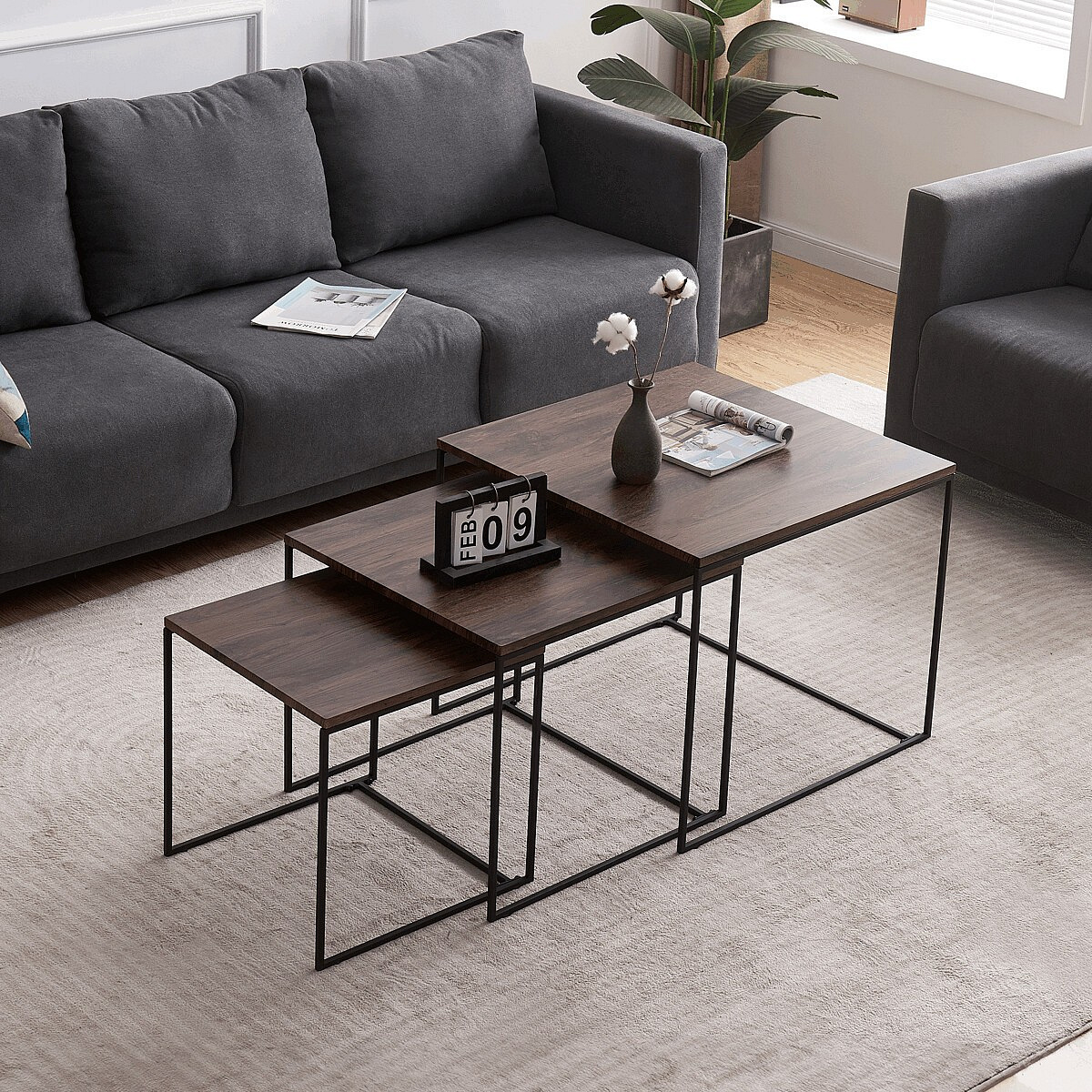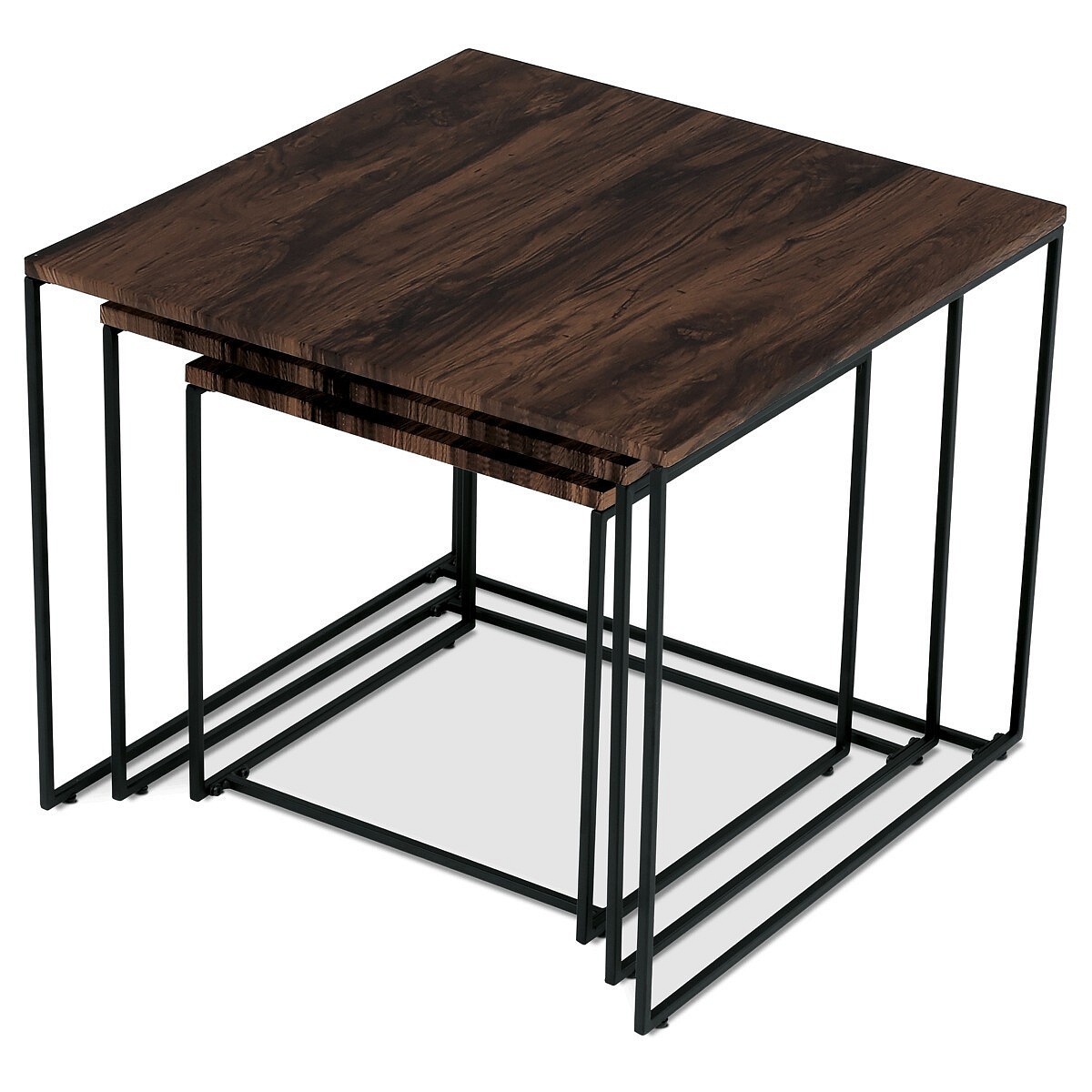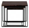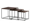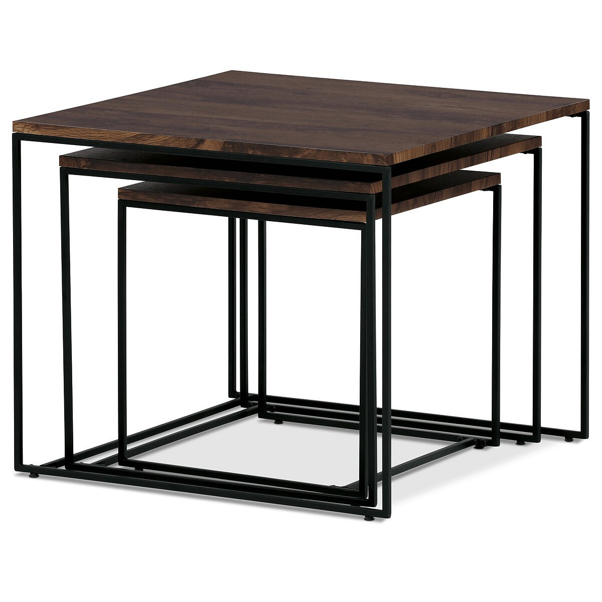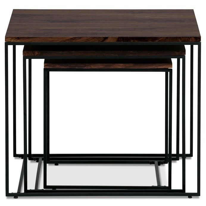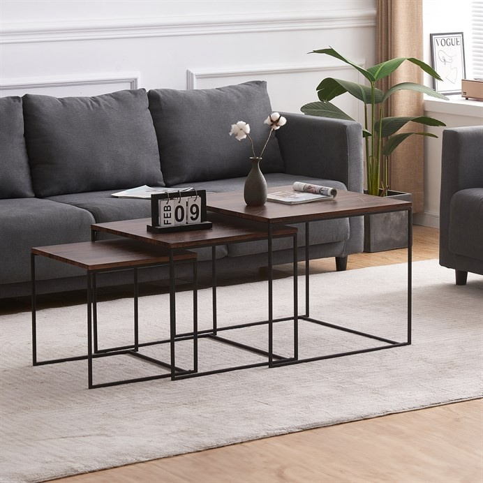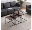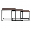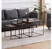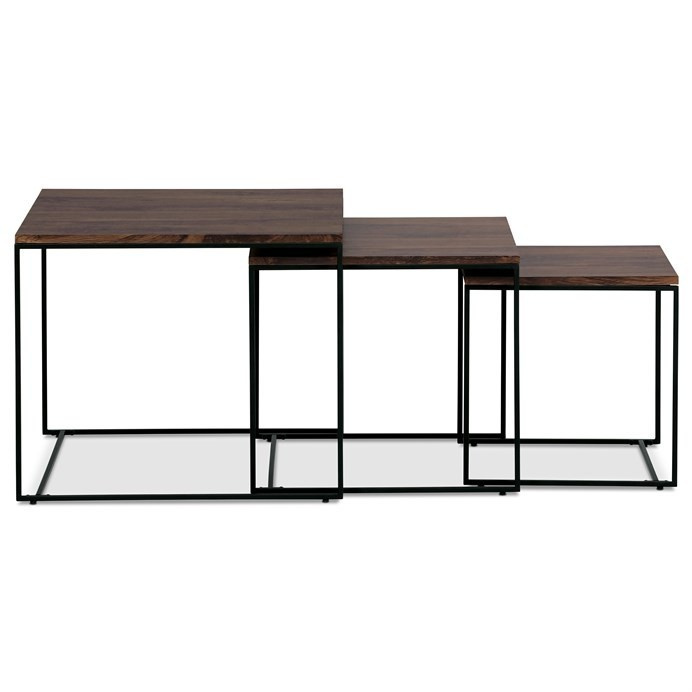 Tato sada konferenčních stolků, vyrobená proslulou značkou Autronic, pozvedne díky své industriální estetice jakýkoli prostor a bez problémů se začlení do kancelářských salonků, konferenčních místností nebo do srdce vašeho obývacího pokoje. Jeho čtvercová deska z MDF, zdobená sytým dekorem ořechu, v sobě snoubí odolnost se stylovým vkusem, díky čemuž vynikne jako výrazný kousek uprostřed jakéhokoli interiéru. Hnědý odstín desky stolu elegantně kontrastuje s kruhovými černými kovovými nohami, které tvoří pevný základ, jenž potvrzuje spolehlivost i noblesu.