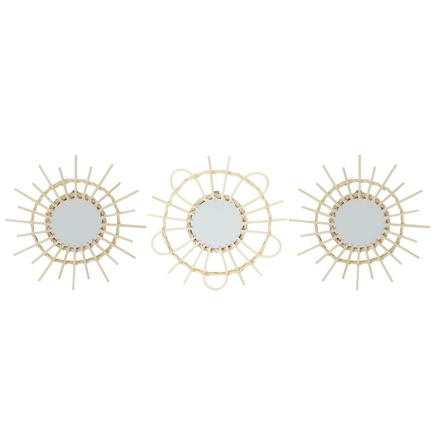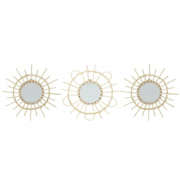 Sada tří přírodních ratanových zrcadel oživí váš interiér a dodá mu letní svěžest. Tři různá zrcátka o průměru zrcadla 10 cm každé vytvoří na stěně neobyčejnou koláž. V kombinaci s většími zrcadly taková instalace vypadá jako umělecké dílo. Ratanová zrcadla s rámem v přírodní barvě jsou doplňkem jako z exotického prázdninového ostrova. Rozhodni se pro přírodní dekoraci díky zrcadlům z ratanu. Složení: Ratan - Rozměry: 28x1,3x28cm Rozměry balení: 30,00 x 0,10 x 30,00cm