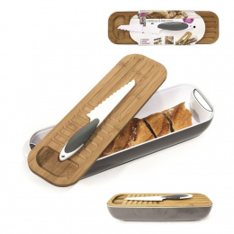 Komplet 3v1 deska, nádoba a nůž ti usnadní práci v kuchyni. Součástí sady je nádoba na pečivo vyrobená z plastu, deska, která zároveň slouží jako víko, vyrobená z bambusu, a speciální nůž. Tato sada urychlí přípravu jídel a usnadní udržování pořádku.