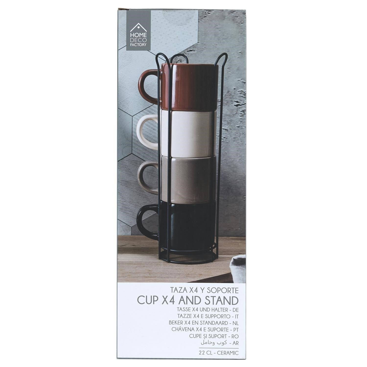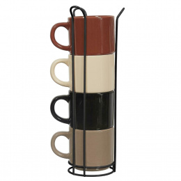 Sada 4 šálků Japandi na stojanu