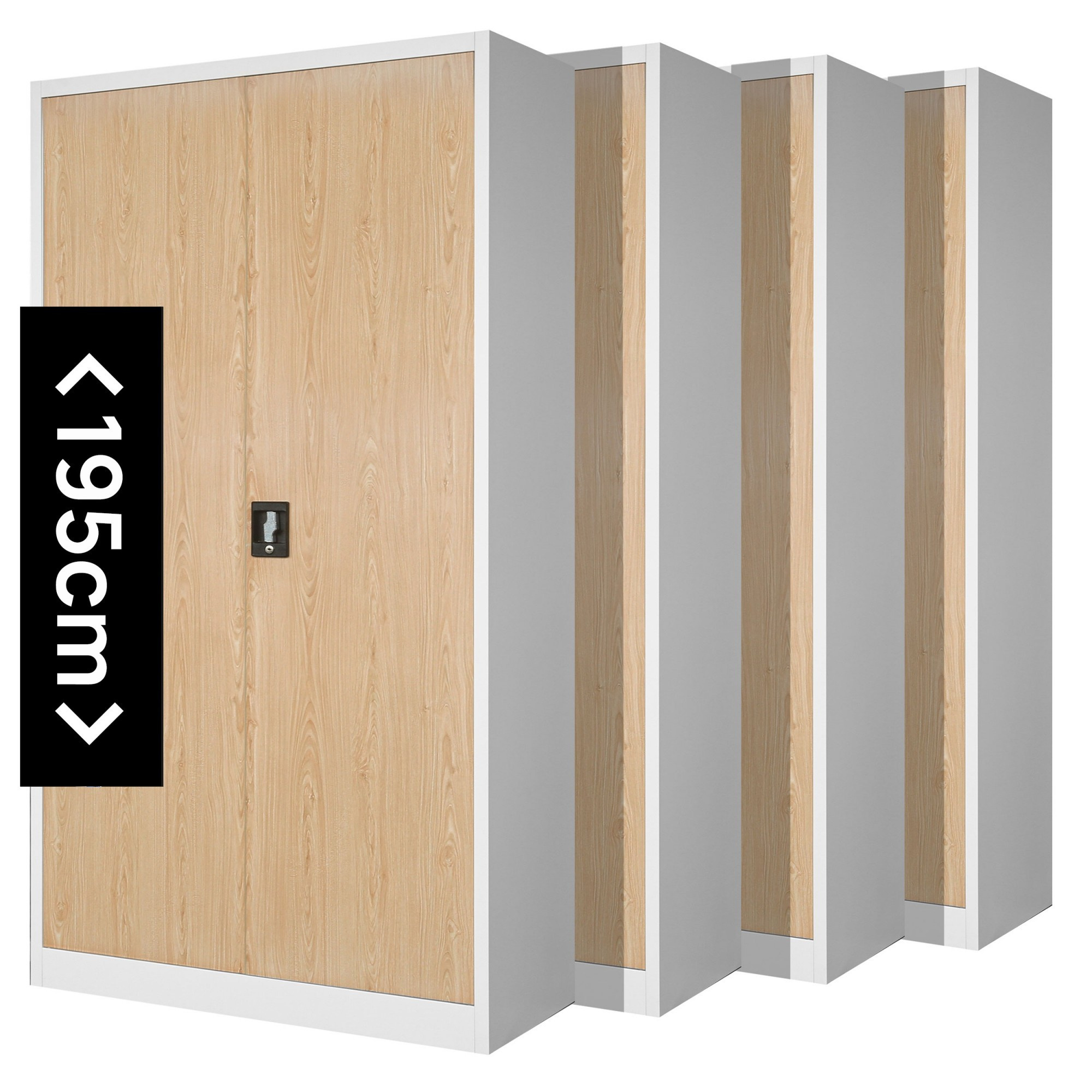 Sada 4x kancelářská kovová skříň JAN H, 900 x 1950 x 400 mm, Eco Design: bílá/ dub sonoma