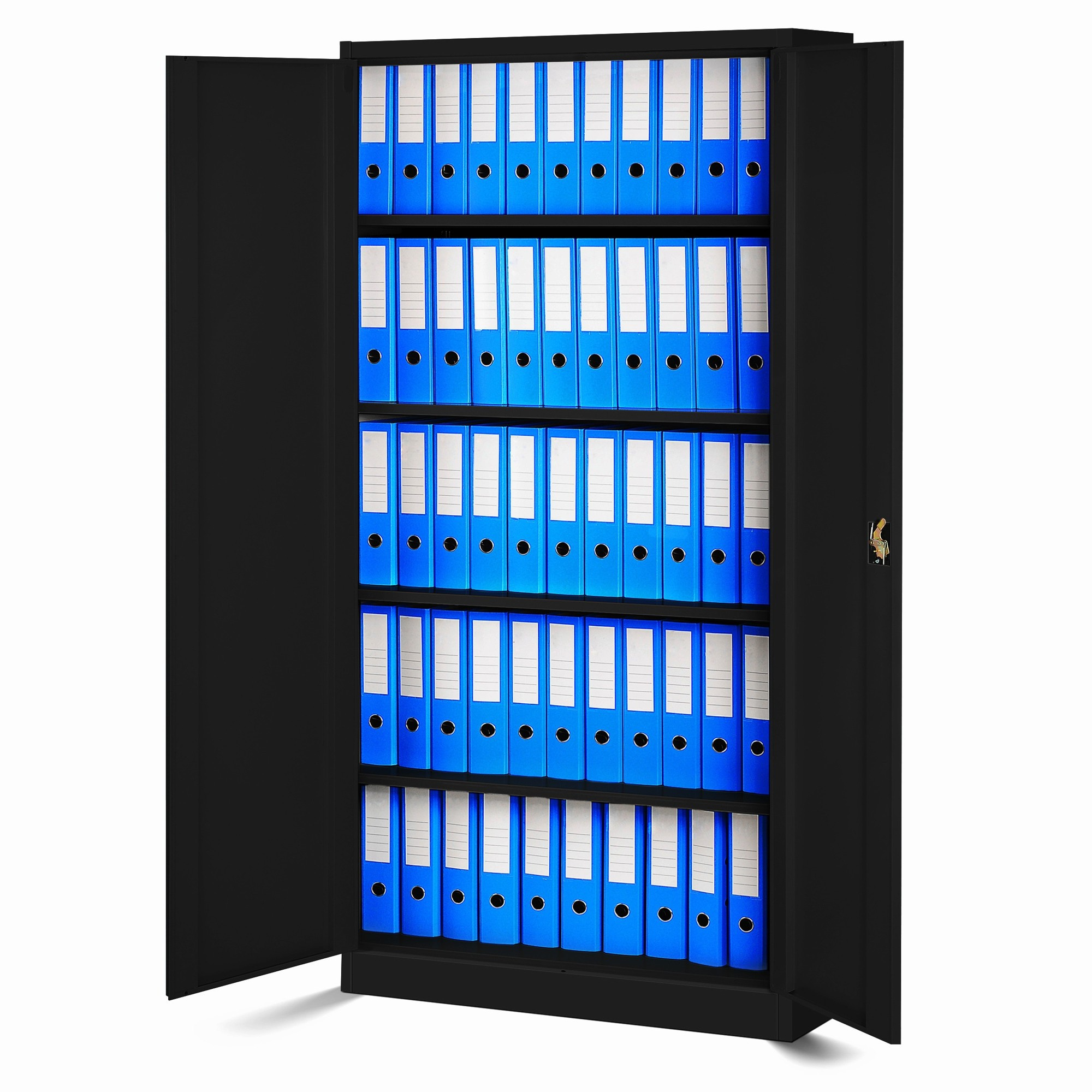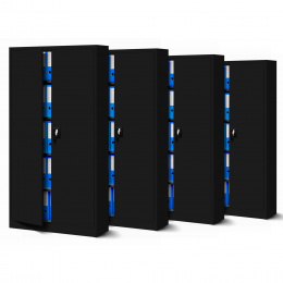 Sada 4x kancelářská kovová skříň na dokumenty JAN, 900 x 1850 x 400 mm, černá