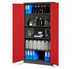 - Atraktivní Design: Kombinace antracitové a červené barvy (RAL 7016 – RAL 3020) dodává skříni moderní a elegantní vzhled, který se hodí do různých typů interiérů.