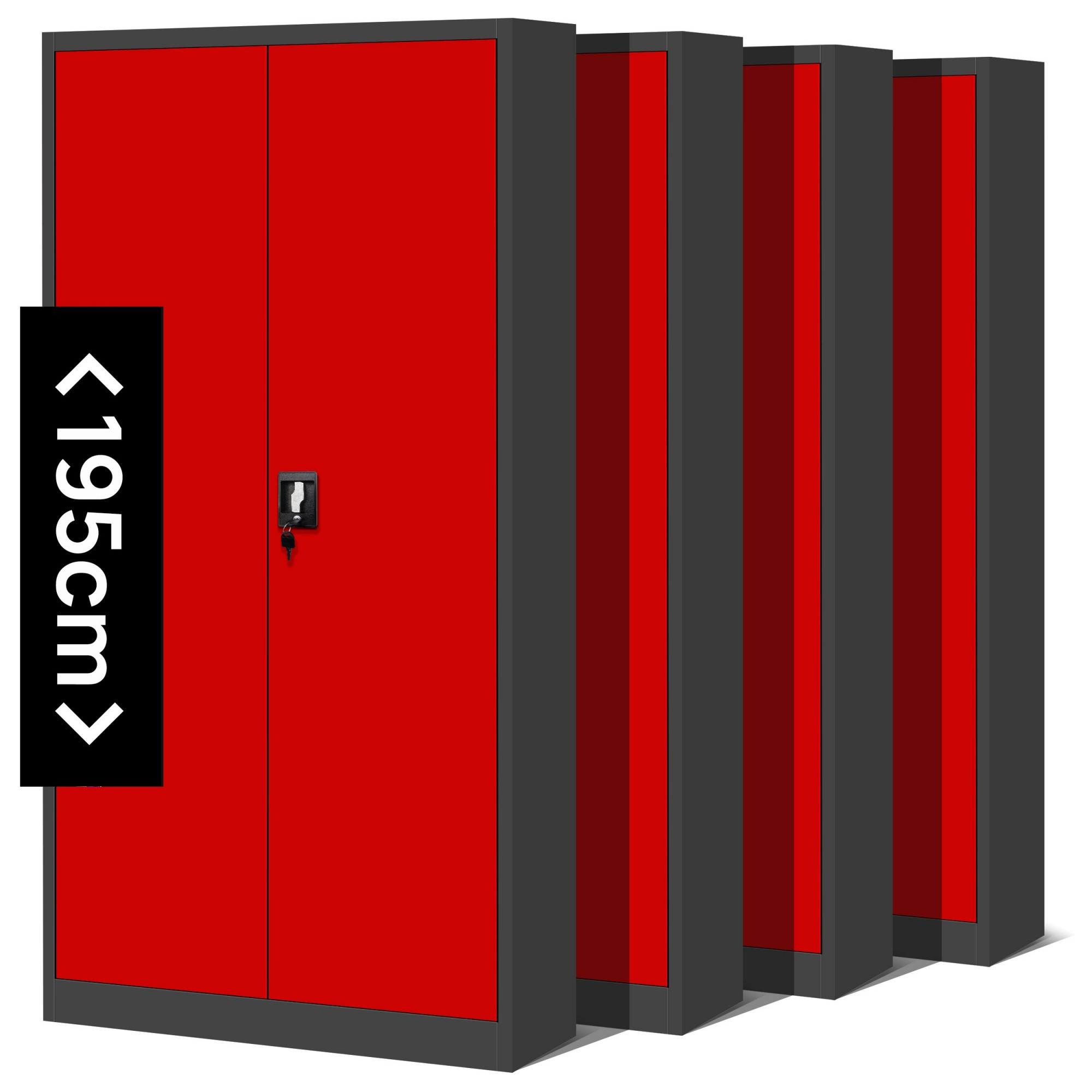 Sada 4x kancelářská kovová skříň na dokumenty JAN H, 900 x 1950 x 400 mm, antracitově-červená