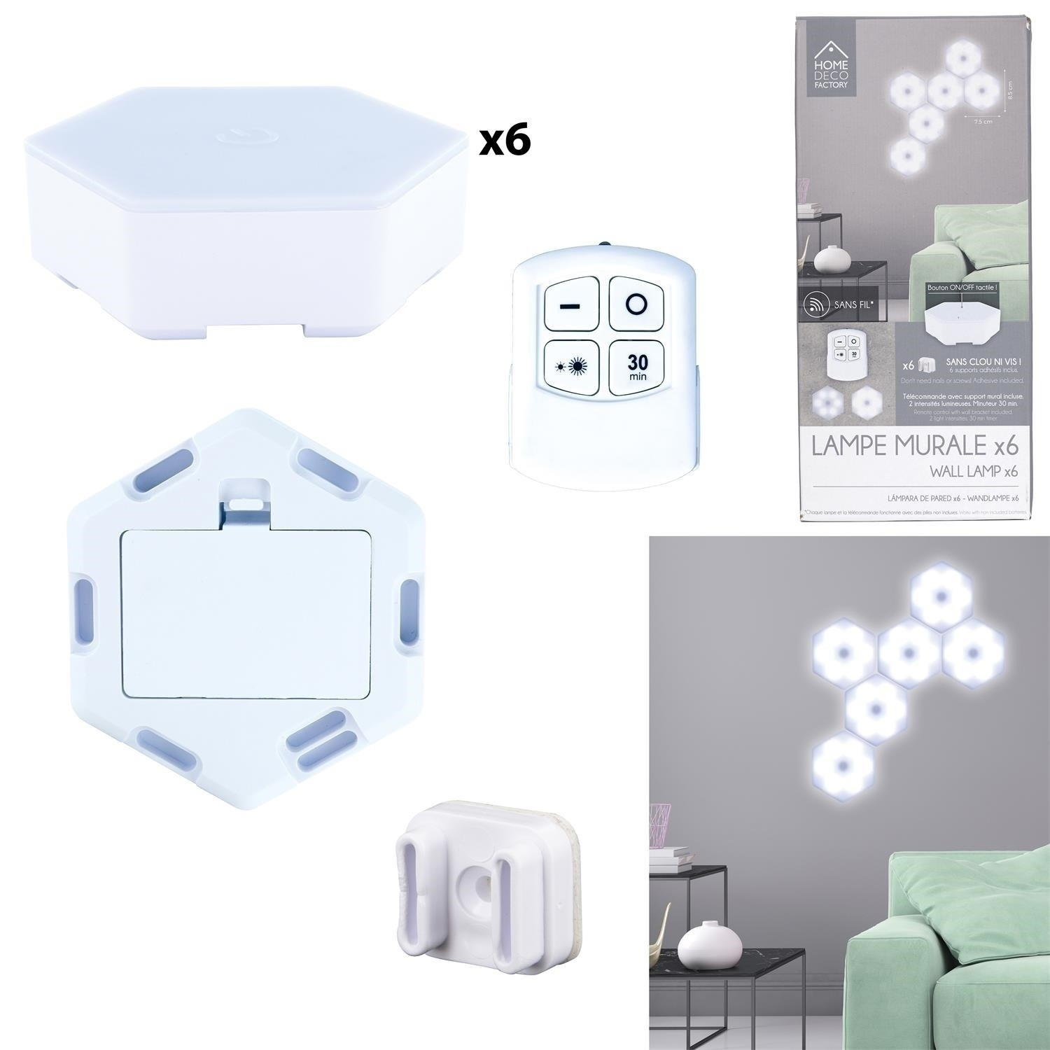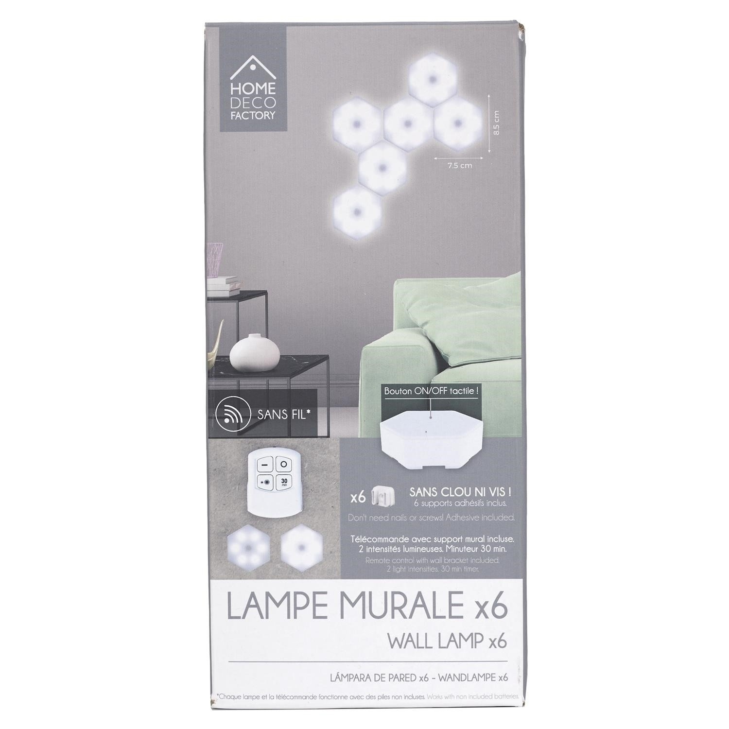 Sada 6 lampiček ve tvaru hexagonu je jedinečná ozdoba, kterou můžeme pověsit kdekoli, protože jsou napájeny bateriemi. Lampy byly vyrobeny z plastu. Pomocí přiložených konektorů v sadě můžeme lampičky spojovat, vytvářet tak koláže nebo různé světelné tvary na stěně. Každá lampička je napájena třemi bateriemi (nejsou součástí balení). Lampy mají proměnlivou intenzitu světla. Lampy ovládáme pomocí dálkového ovladače.