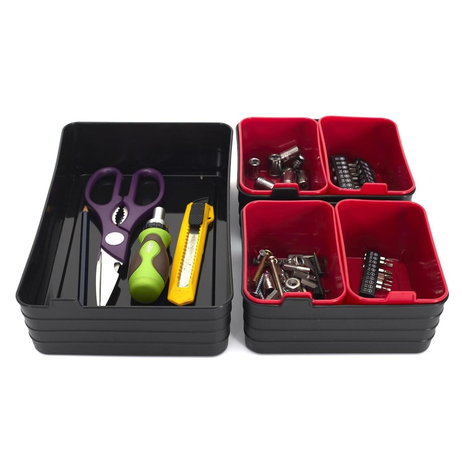 Sada organizérů do zásuvek nebo organizérů do dílny. Sada obsahuje 7 organizérů z plastu ve dvou barvách. Pomohou zorganizovat prostor a udržet pořádek v zásuvkách nebo skříňkách. Materiál: polypropylen