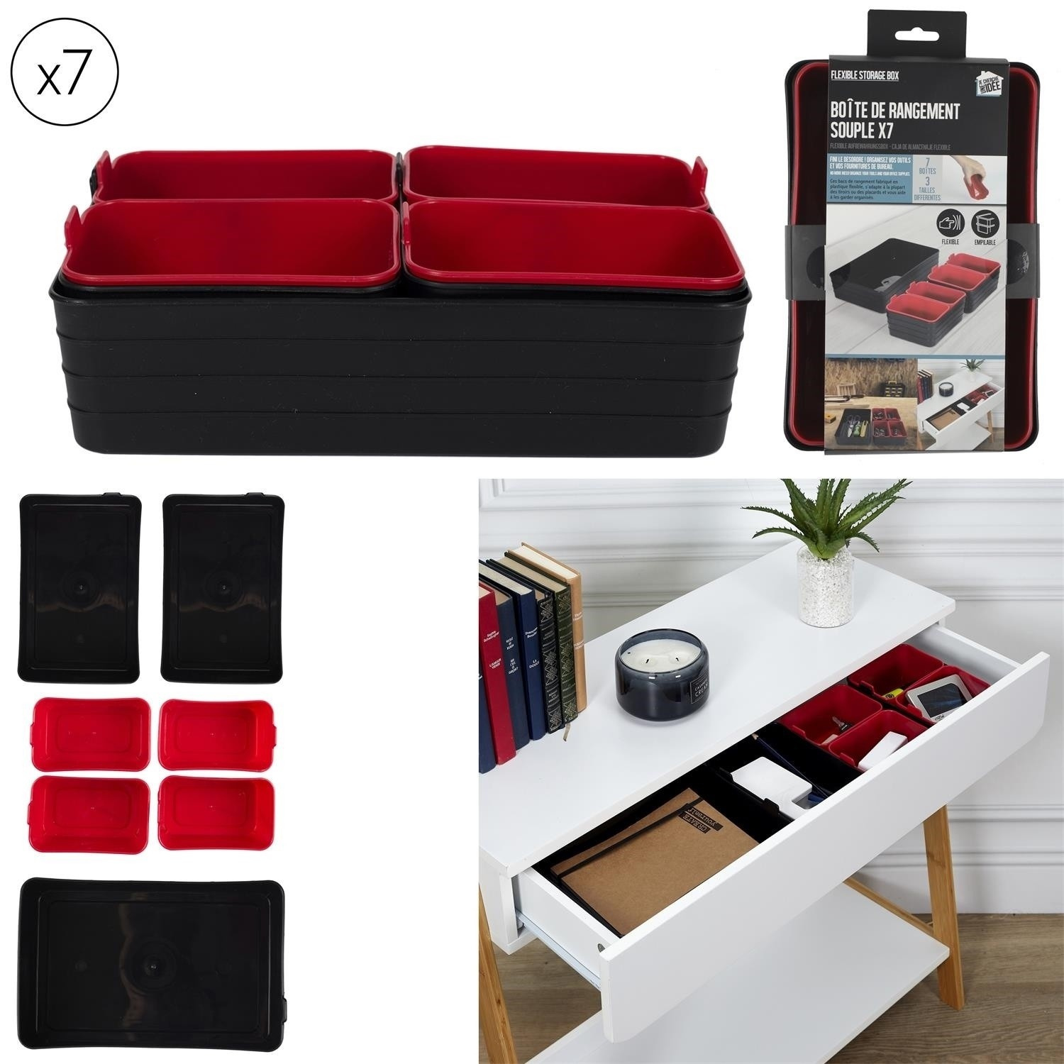 Sada 7 organizérů černé/červené