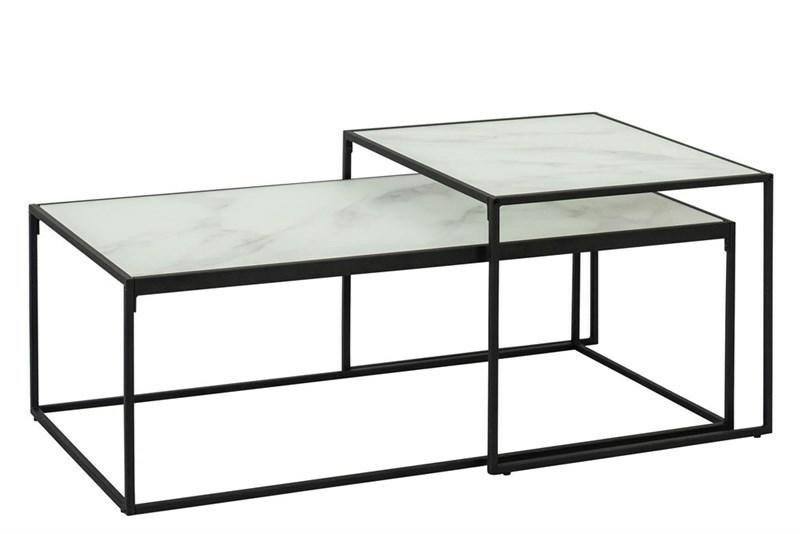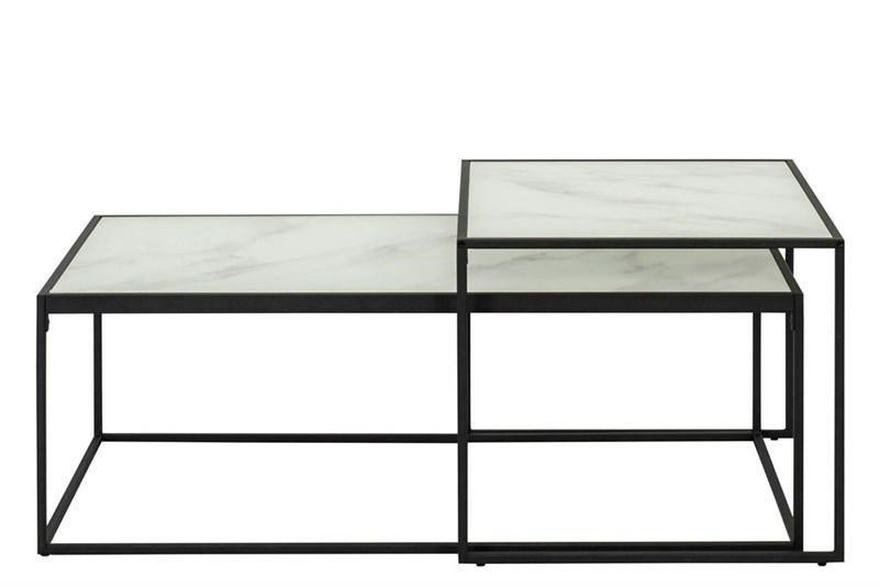 Sada stolků Bolton je ideálním řešením pro osoby hledající nábytek do moderních prostor. Sada se skládá z většího a menšího stolku. Stolky mají skleněné desky zdobené vzorem imitujícím mramor a kovové podstavce v matné černé barvě. Desky byly vyrobeny z elegantního 6mm skla, zatímco podstavce jsou z kovu lakovaného práškovou barvou na černo. Stolky se ideálně hodí do moderního obývacího pokoje, haly nebo čekárny ve stylu hampton nebo modern glamour. Rozměry stolků: větší: 100 cm x 50 cm x výška 35 cm menší: 50 cm x 55 cm x výška 43 cm