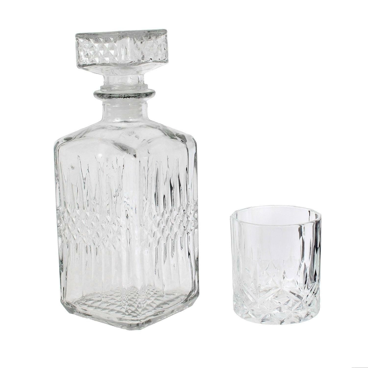 Klasická sada na whisky z kolekce Verre se skládá ze čtyř sklenic na whisky a karafy. Na povrchu sklenic a karafy najdeme hustě umístěné křížové zářezy, nad nimi najdeme svislé rýhy tvořící klasický, tradiční vzor. Prezentuj a podávej svou whisky v sadě skládající se ze 4 sklenic a skleněné karafy. Ideální na večery nebo jako dárek. Sada je zabalena v krabici, která je také skvělým nápadem na dárek. Kapacita karafy: 930 ml - Kapacita sklenic: 200 ml. Rozměry karafy: 9 x 9 x 22,8 cm