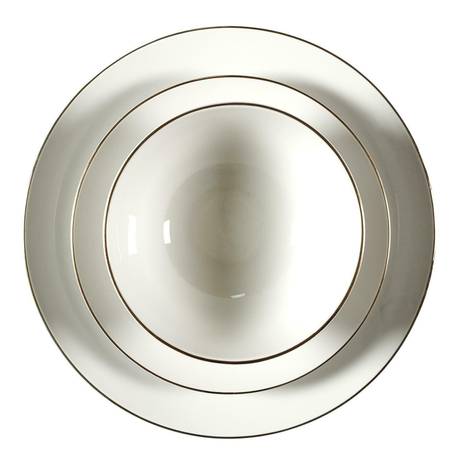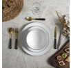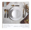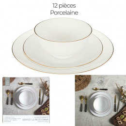 Sada stolního nádobí skládající se z 12 prvků bude ideální pro prostření stolu pro 4 osoby. Sada se skládá ze 2 mělkých talířů, jídelních o průměru 27 cm, 4 dezertních talířů o průměru 19 cm, 4 hlubokých misek o objemu 600 ml. Celé vyrobeno z porcelánu. Okraje talířů byly ozdobeny zlatým proužkem. Zastana není vhodná pro mytí v myčce, Nelze používat v troubě, Nelze používat v mikrovlnné troubě, Nelze používat v mrazáku