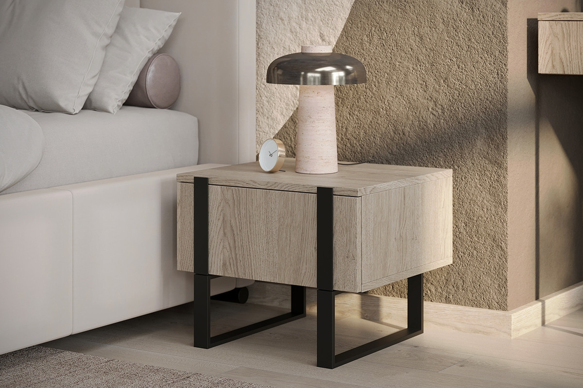 Sada nočních stolků Verica 2 ks. - dub piškotový / černé nožky, Šířka: 50, Výška: 40, Hloubka: 45, Výška nožek: 17