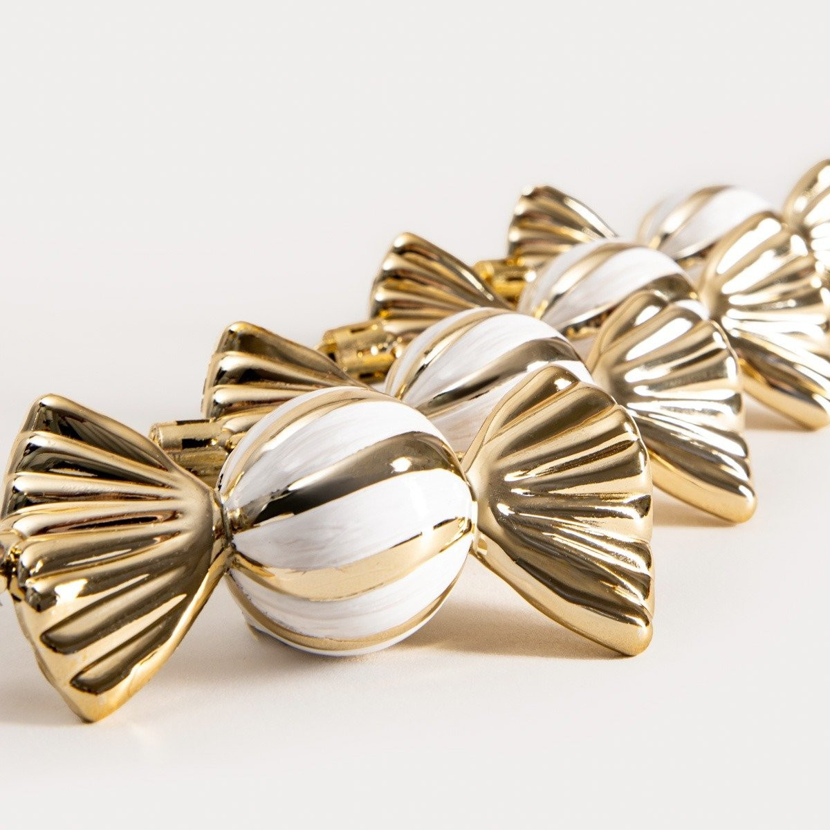 Hledáte elegantní dekorace, které zvýrazní kouzlo Vánoc a dodají vašemu stromku zvláštní nádech? Sada ozdob KENDI ve tvaru zlatých bonbónů je výraznou dekorací, která rozzáří váš interiér vánočním třpytem. Zlatý lesk krásně odráží světlo lamp, vytváří teplou a útulnou atmosféru v každé místnosti.