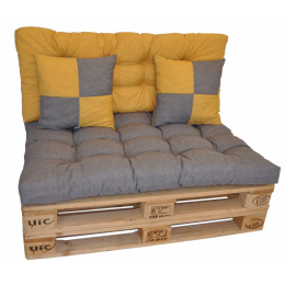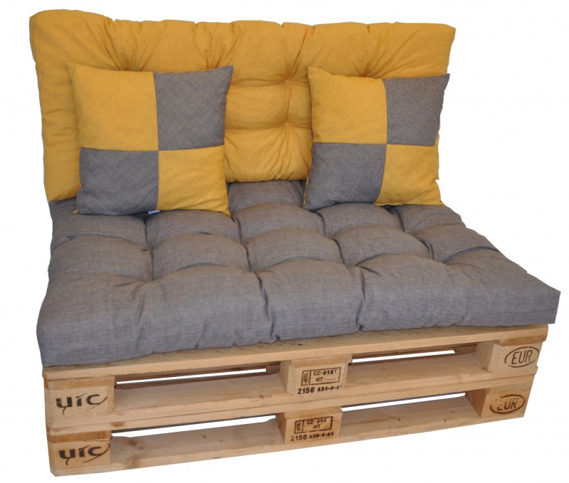 Souprava polstrů na paletové sezení pro 2 osoby. | Sada polstrů na paletové sezení. Sada polstrů obsahuje: - sedací polstr o velikosti 120x80 cm - opěradlový polstr o velikosti 120x50 cm - 2 polštáře o velikosti 40x40 cm Polstry jsou vyrobeny z velice kvalitní látky. Plněny jsou drceným molitanem. Tloušťka polstrů je přibližně 10 cm. Tyto polstry vyrábíme v naší firemní dílně. Velice si zakládáme na kvalitě zpracování. Všiměte si odšitých rohů a kvalitního prošití na profesionálních prošívacích strojích. Sedací polstr je prošitý na dvanácti místech, což zaručuje pohodlné sezení a polstry netlačí. Do naší sady paletových polstrů jsme záměrně přidali dva polštáře, protože když jsme vyzkoušeli posezení, kvalita sezení se několikanásobně zvýšila a dovolím si říci, že bez dvou polštářů je sezení ne zcela příjemné. U nás máte zkrátka jistotu, že nám na kvalitě záleží a naše výrobky také sami zkoušíme ( ne pouze prodáváme).