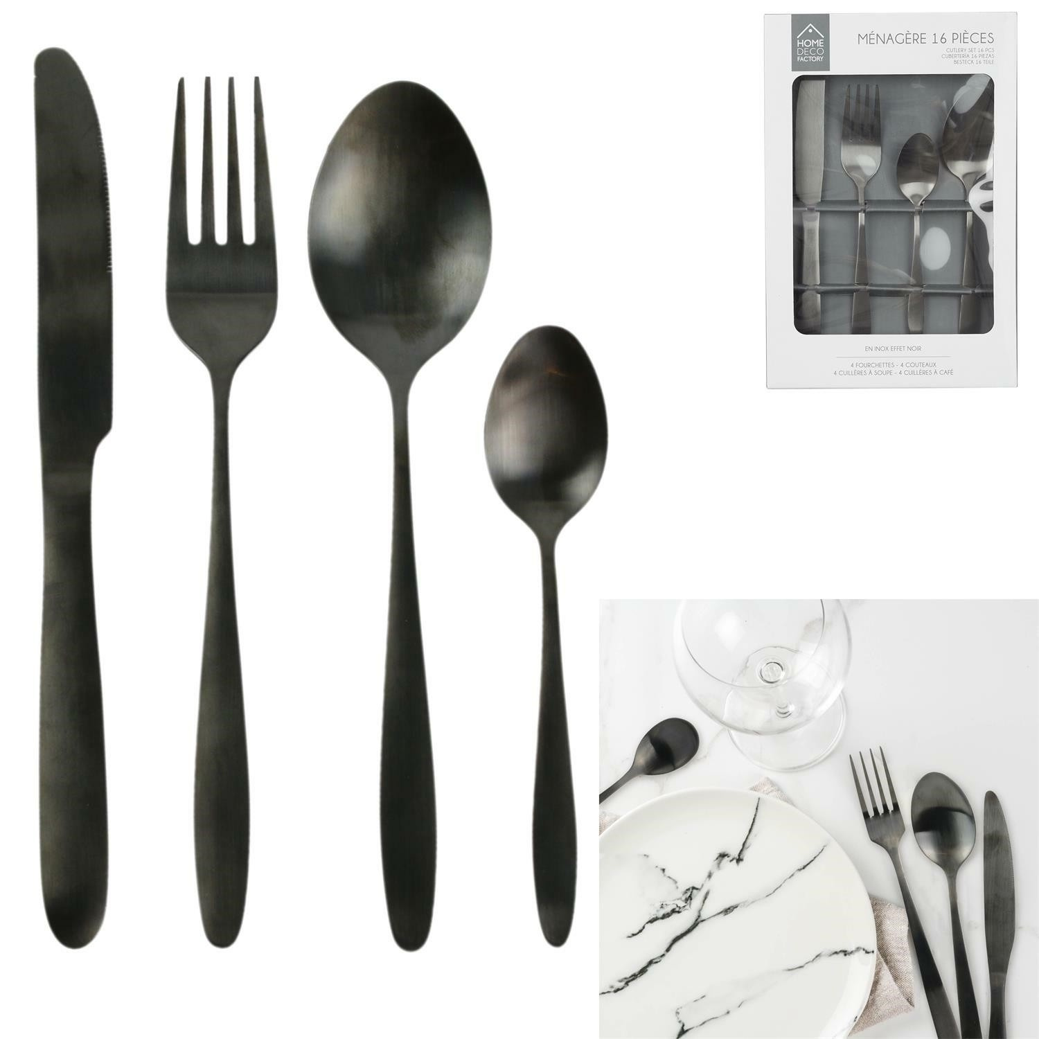 Sada příborů Charbon černá 16ks