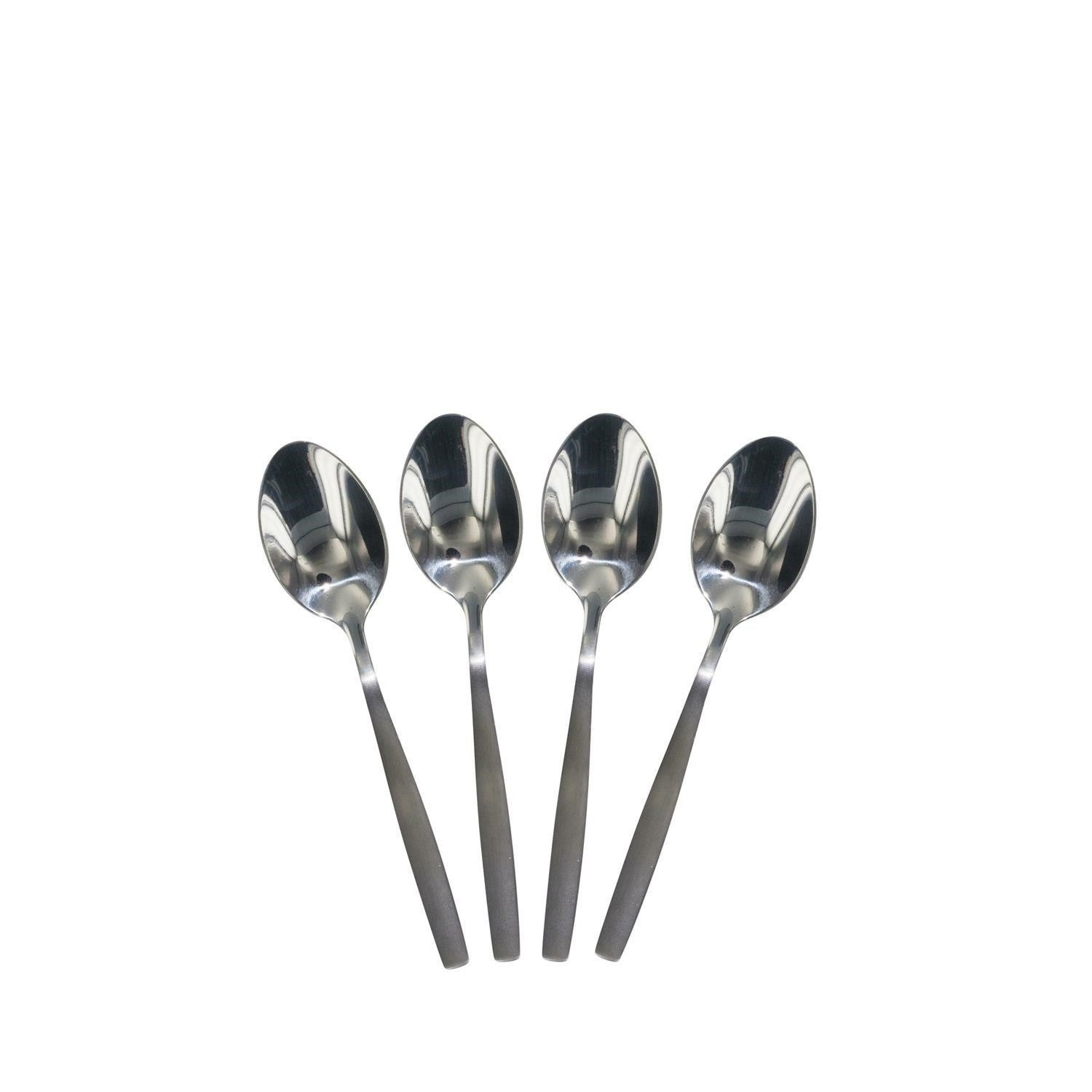 Příbory vyrobené z nerezové oceli se zajímavým provedením. Ideální jak pro každodenní použití, tak pro výjimečné příležitosti. Originální design ve stříbrné barvě se hodí do interiéru každé místnosti. Zabaleno v originální krabici od výrobce - ideální jako dárek. Obsah: 4 čajové lžičky - 4 vidličky - 4 nože - 4 lžíce.