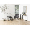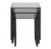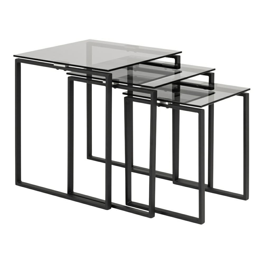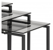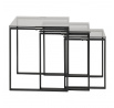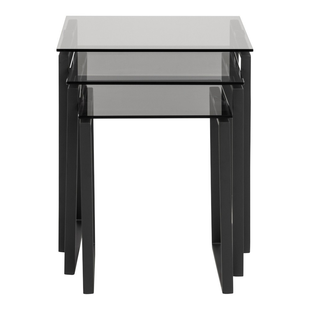 Moderní sada stolků Katrine se skládá ze tří stolků různých velikostí. Nadčasové spojení kovu se sklem vytváří zajímavou kompozici. Skleněné čtvercové desky stolků o tloušťce 8 mm jsou vyrobeny z kouřového skla. Kovová základna stolků byla natřena práškovou barvou na černo. Rozměry stolků (cm): 50x50x55; 43x43x50; 36x36x45 Hmotnost: 17,3 kg. Rozměry kartonu: 13,3cm x 57,2cm x 53cm