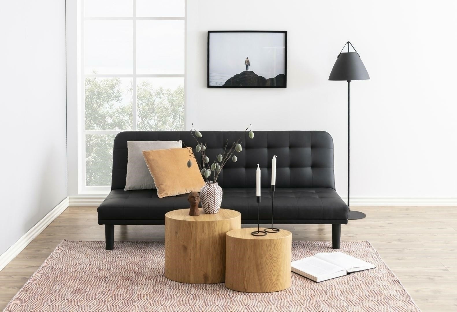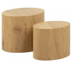 Sada stolků imitujících dřevěné pařezy je stolky a ozdoba ve stylu boho. Oválné stolky byly vyrobeny z materiálu potaženého dýhou imitující dub. Sada se skládá ze dvou stolků. Hmotnost: 9 kg Rozměry: 33 cm x 48 cm x 40 cm 24,5 cm x 40 cm x 33 cm