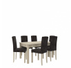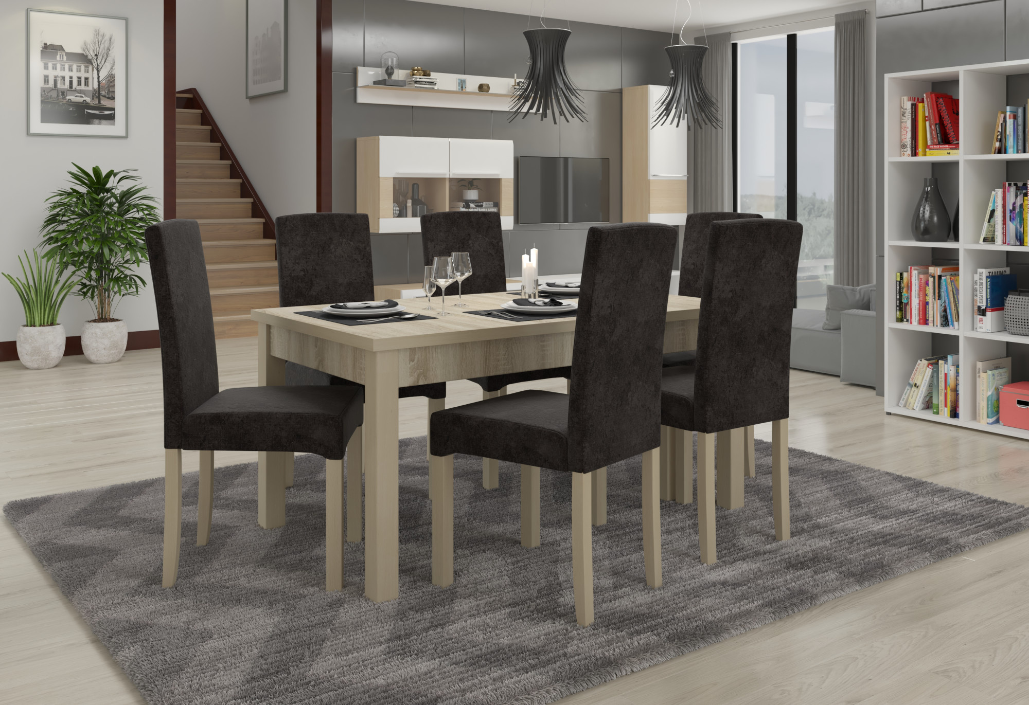 Sada RODOS 56 se ideálně hodí do vaší jídelny. Sada obsahuje stůl s obdélníkovou deskou a šest čalouněných židlí. Stůl můžeš rozložit pomocí vložky, která prodlouží desku až na 180 cm. Stylové židle se vyznačují stabilními nohami vyrobenými z bukového dřeva a čalouněným sedákem a opěradlem s libovolnou potahovou látkou na výběr z ukázaných v galerii. Díky široké škále barev se sada hodí do každého interiéru a doplní váš obývací pokoj, kuchyň nebo jídelnu...