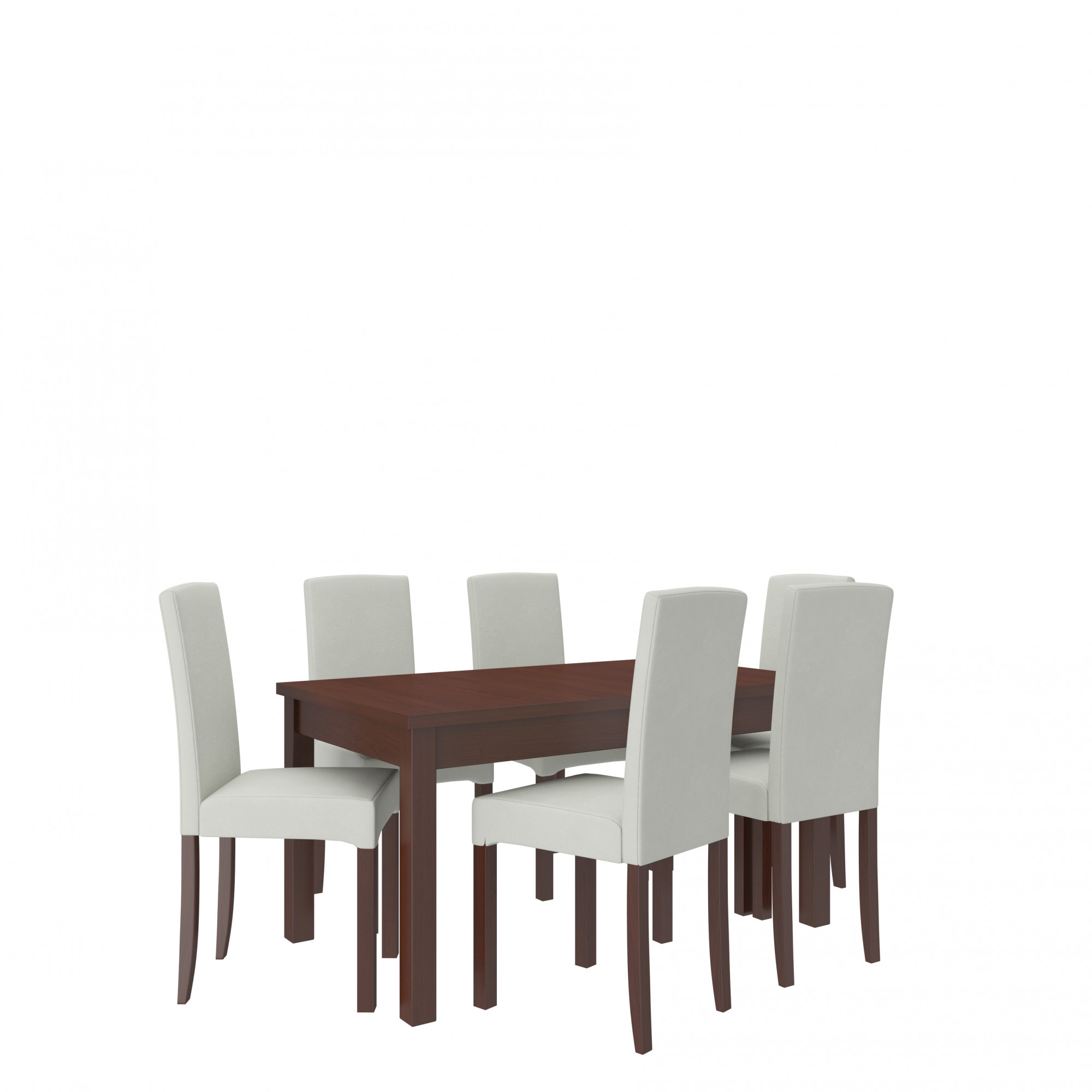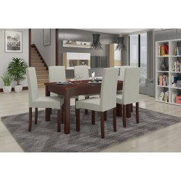 Sada RODOS 56 se ideálně hodí do vaší jídelny. Sada obsahuje stůl s obdélníkovou deskou a šest čalouněných židlí. Stůl můžeš rozložit pomocí vložky, která prodlouží desku až na 180 cm. Stylové židle se vyznačují stabilními nohami vyrobenými z bukového dřeva a čalouněným sedákem a opěradlem s libovolnou potahovou látkou na výběr z ukázaných v galerii. Díky široké škále barev se sada hodí do každého interiéru a doplní váš obývací pokoj, kuchyň nebo jídelnu...