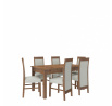 Sestava RODOS 57 je ideálním řešením pro klasickou jídelnu. Součástí sady je pevný stůl a šest pohodlných židlí. Stůl s jednoduchým designem umožní pohodlně usadit 6 osob. Nábytek je velmi elegantní a pohodlný. Vyber barvu a kolekci látky a navrhni si svou vysněnou sadu.