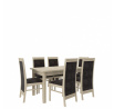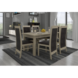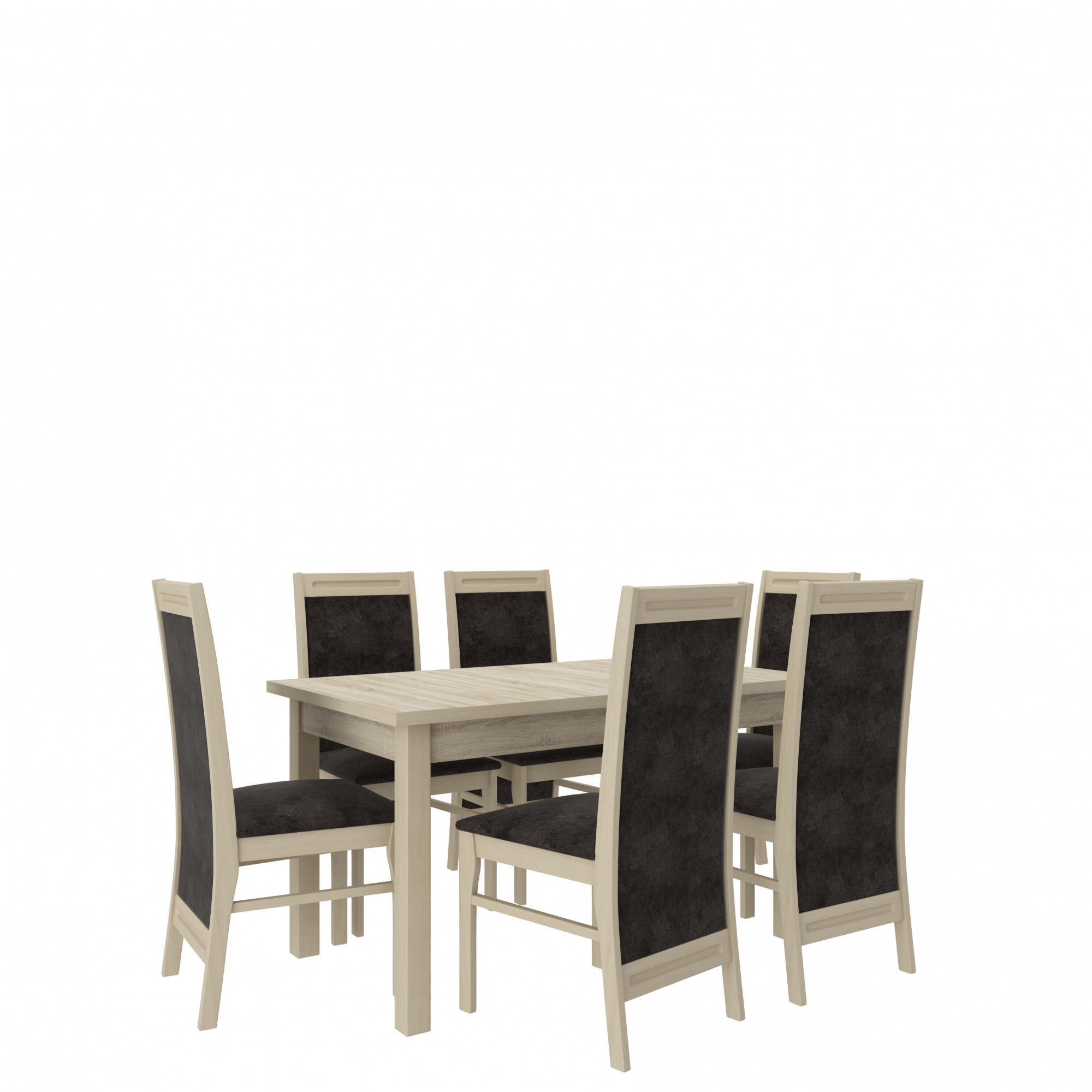 Sada 7 RODOS je ideálním řešením pro klasickou jídelnu. Součástí sady je pevný stůl a šest pohodlných židlí. Stůl s jednoduchým designem umožní pohodlně usadit 6 osob. Nábytek je velmi elegantní a pohodlný. Vyber barvu a kolekci látky a navrhni si svou vysněnou sadu.