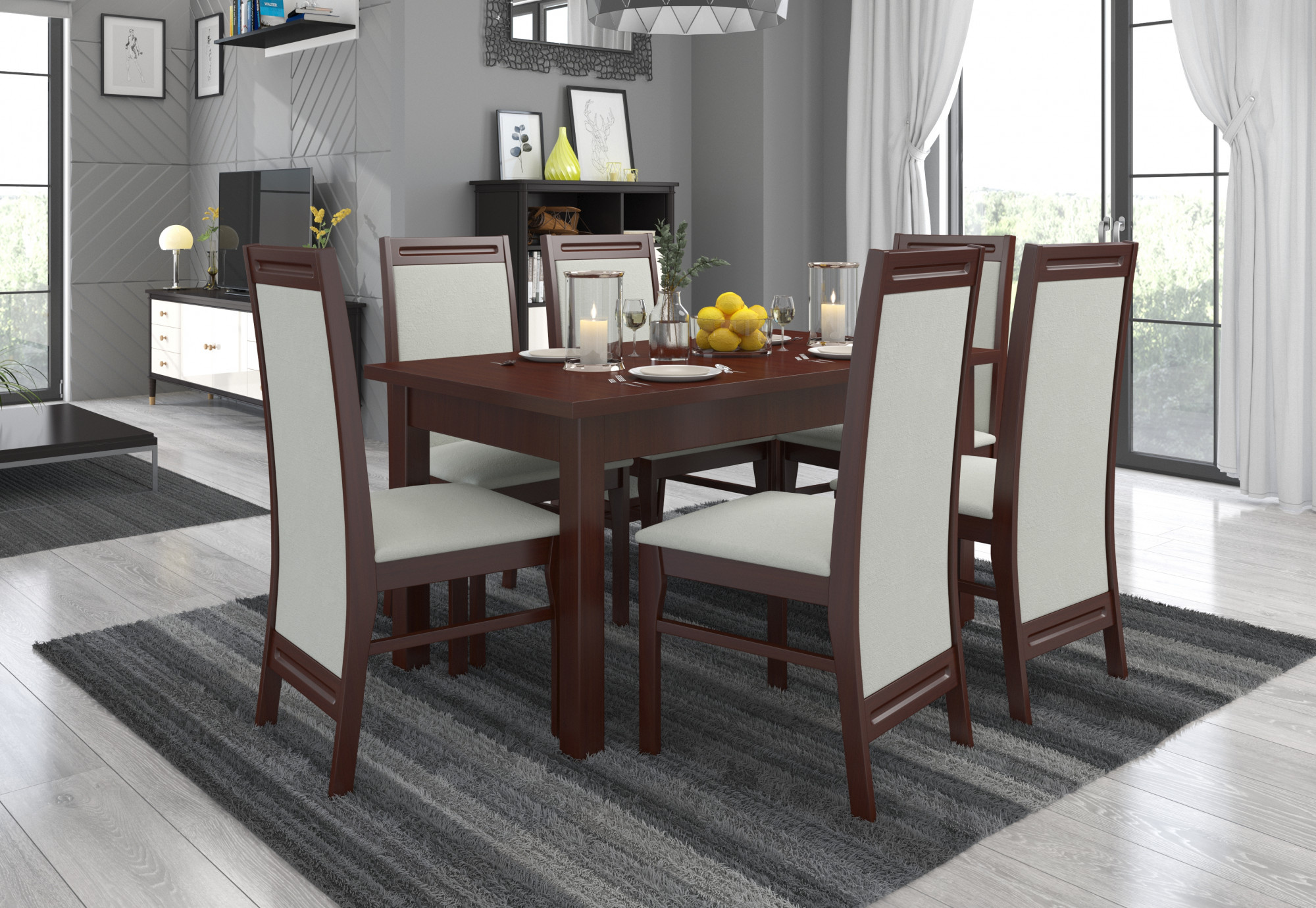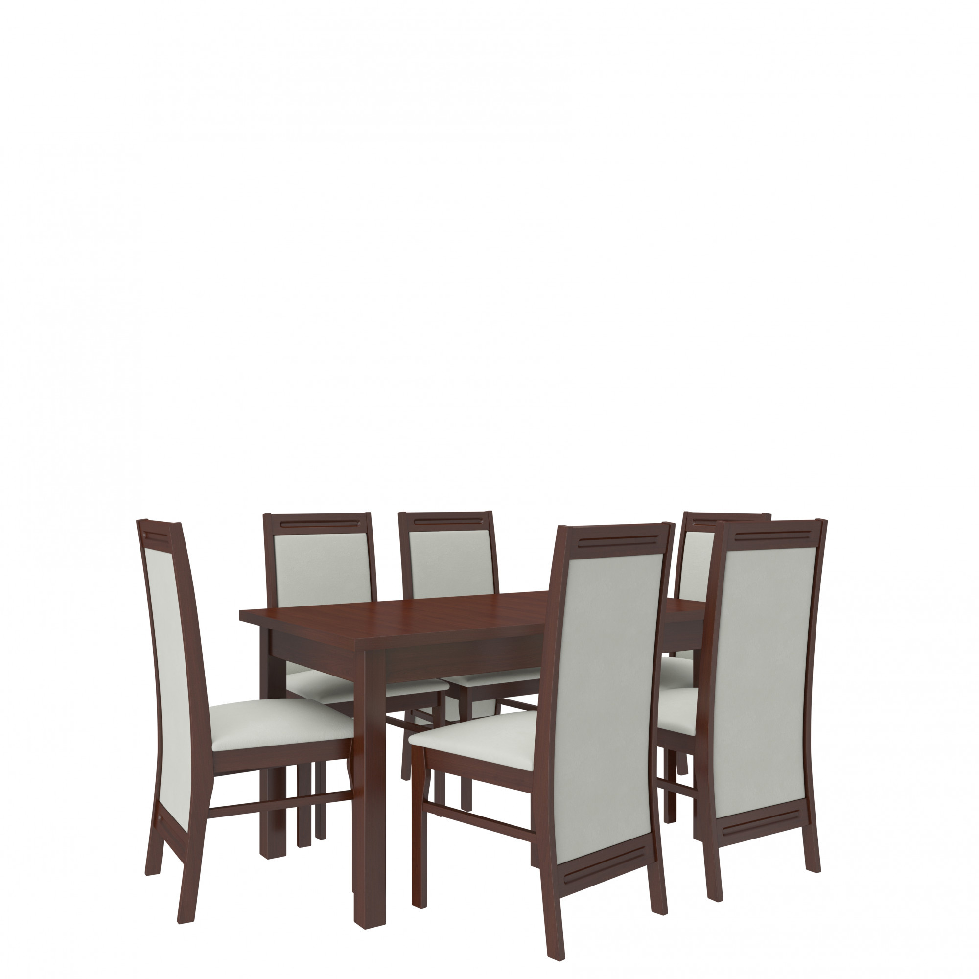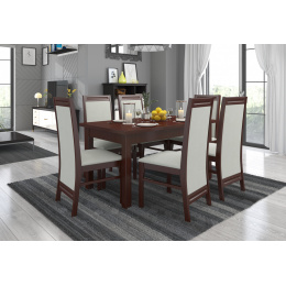 Sada 7 RODOS je ideálním řešením pro klasickou jídelnu. Součástí sady je pevný stůl a šest pohodlných židlí. Stůl s jednoduchým designem umožní pohodlně usadit 6 osob. Nábytek je velmi elegantní a pohodlný. Vyber barvu a kolekci látky a navrhni si svou vysněnou sadu.