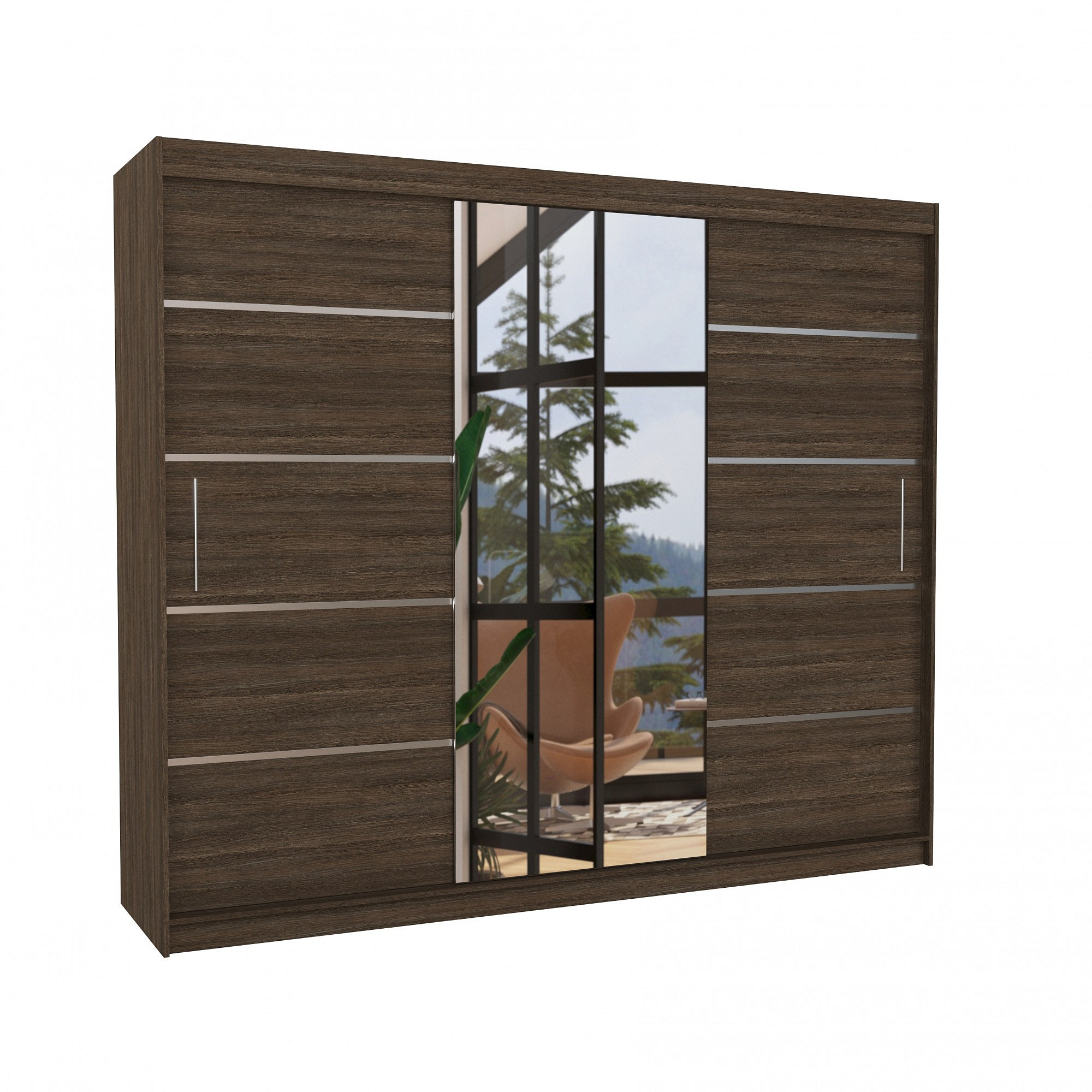 Šatní skříň s posuvnými dveřmi a zrcadlem SALTO 250 Choco+Choco
