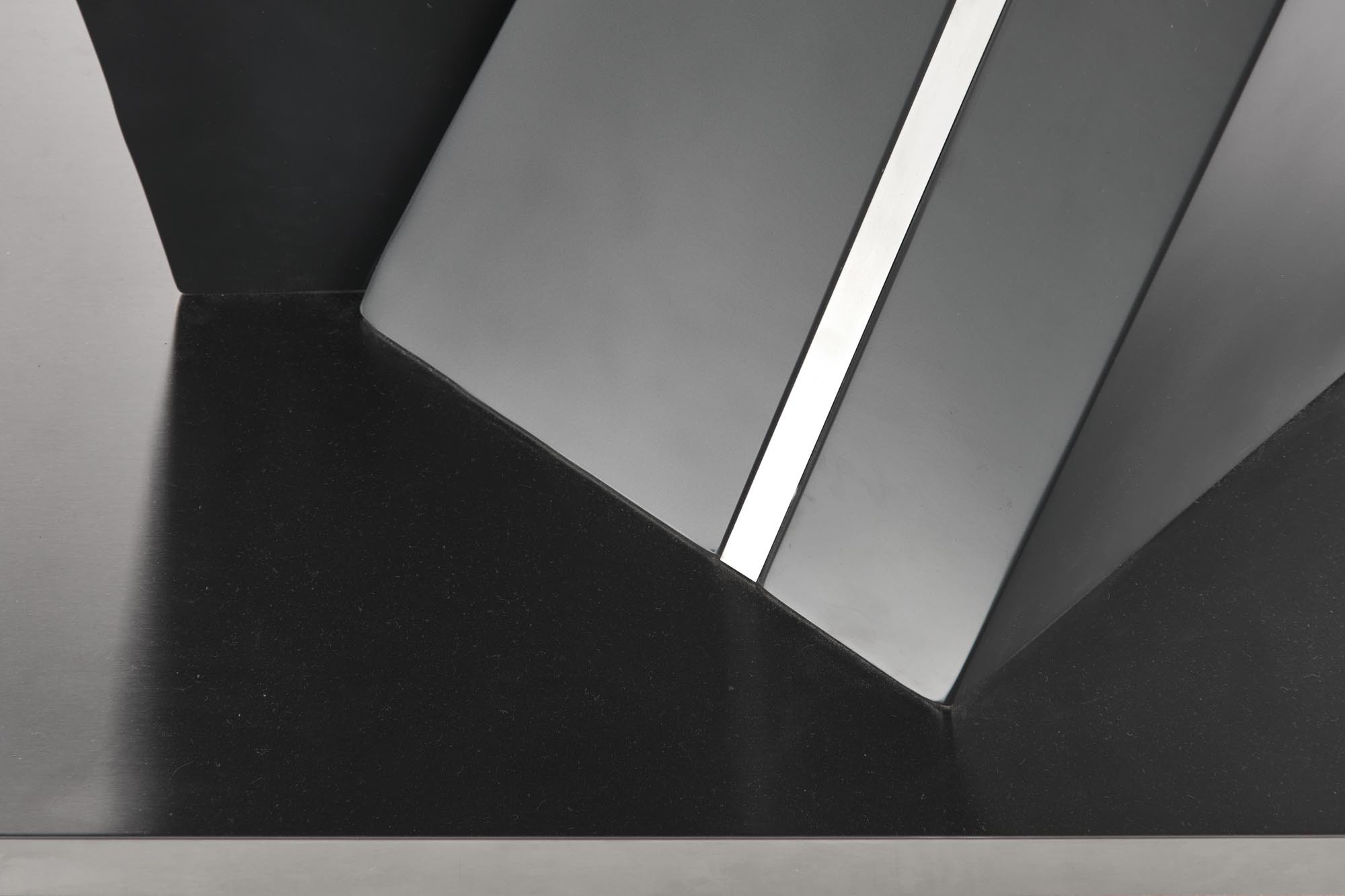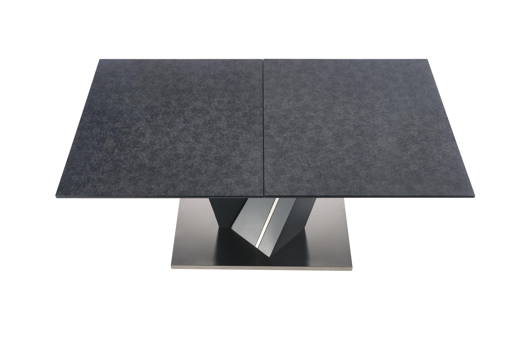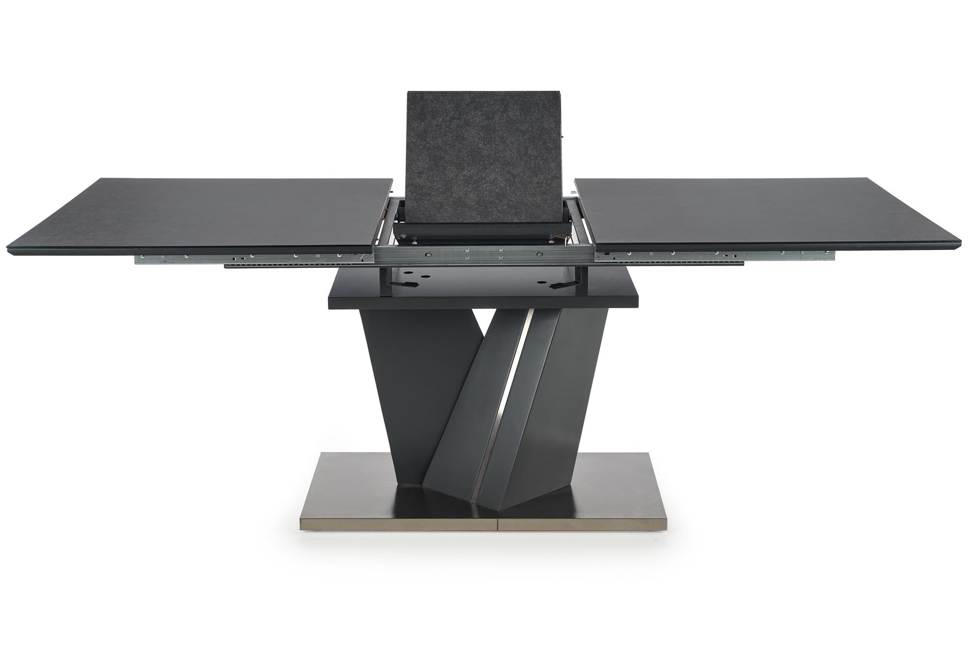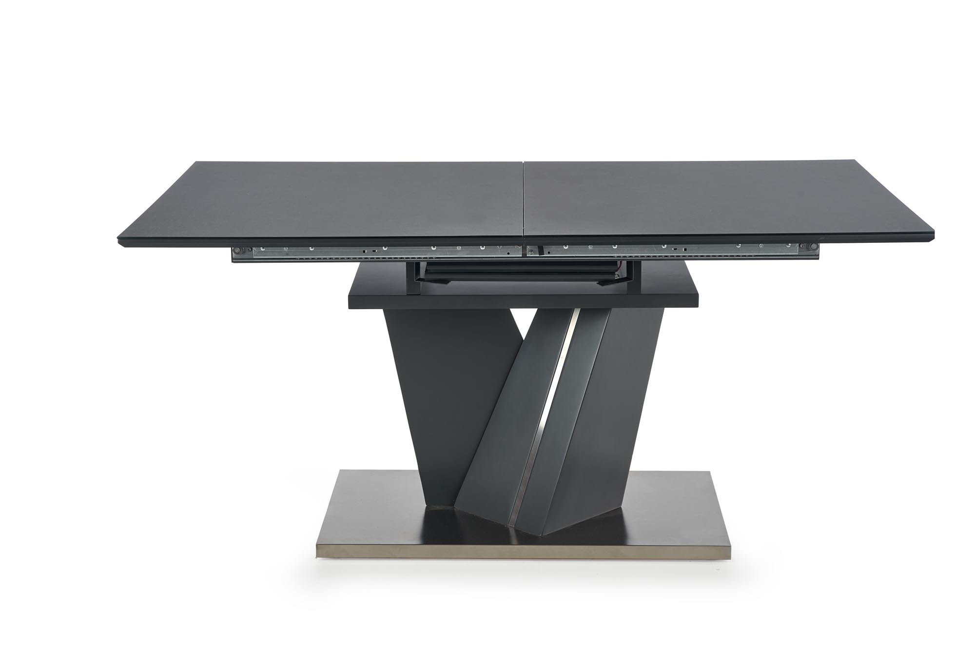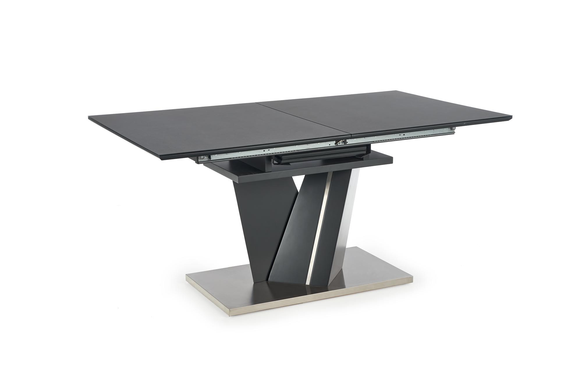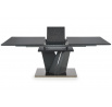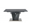 rozkládací stůl, rozměry: 160-200/90/77 cm, materiál: sklo / lakovaná MDF / nerezová ocel, barva: deska stolu - tmavě šedá, nohy - tmavě šedé