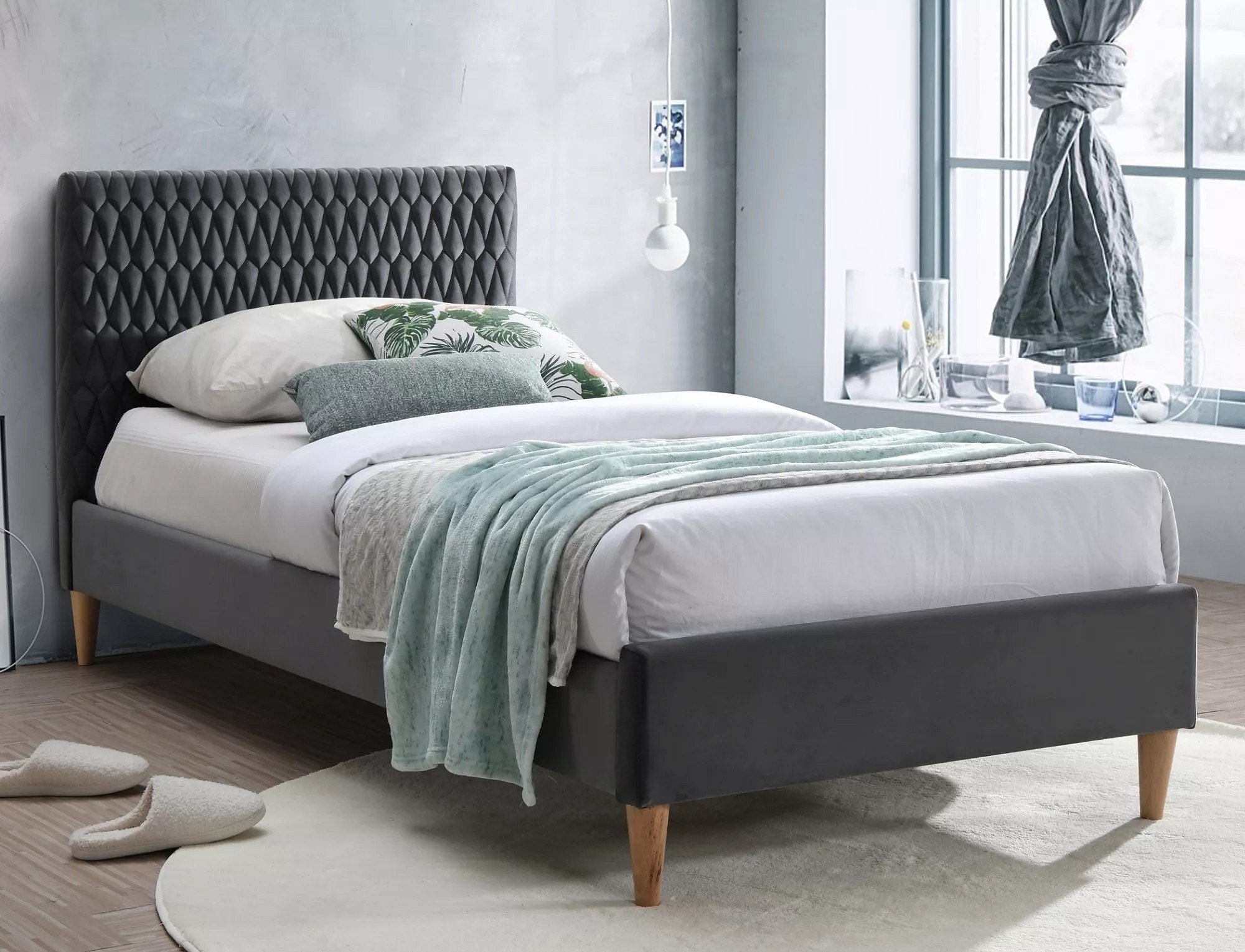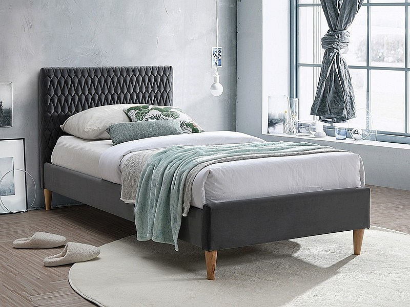 Postel AZURRO Velvet, 90x200 cm, šedý Bluvel 14/dub