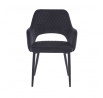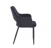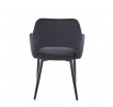Rozměry: - celková výška židle: 85 cm - výška k područce: 65 cm - výška sedáku: 48 cm - výška područky: 19 cm - výška od sedáku k horní části opěradla: 40 cm - šířka sedáku: 48 cm - šířka židle: 59 cm - hloubka sedáku: 48 cm - tloušťka sedáku: 6 cm Materiál: - čalounění: samet - nohy: kov lakovaný práškovou barvou Barva: - sedák + opěradlo: černé - konstrukce: černá