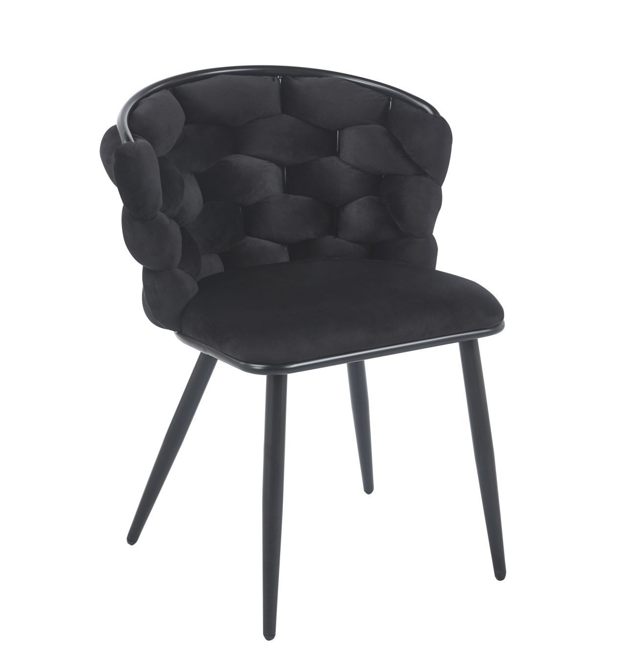 Rozměry: - šířka sedáku: 47 cm - celková šířka: 57 cm - výška sedáku: 49 cm - celková výška: 78 cm - hloubka sedáku: 42 cm Materiál - čalounění: samet - konstrukce: kov lakovaný práškovou barvou Barva: - sedák: černá - konstrukce: černá