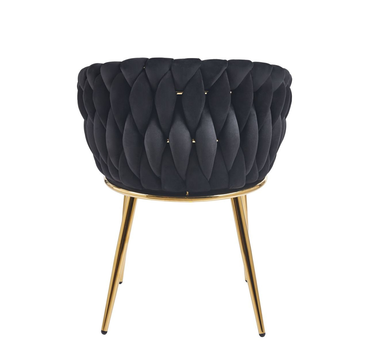 Rozměry: - šířka sedáku: 49 cm - celková šířka: 60 cm - výška sedáku: 42 cm - celková výška: 81 cm - hloubka sedáku: 43,5 cm Materiál - čalounění: samet - rám: chrom Barva: - sedák: černá - rám: zlatá