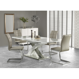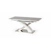 rozkládací stůl, rozměry: 160÷220/90/78 cm, materiál: sklo / lakovaná MDF / nerezová ocel, barva: sklo - šedá, MDF - bílá