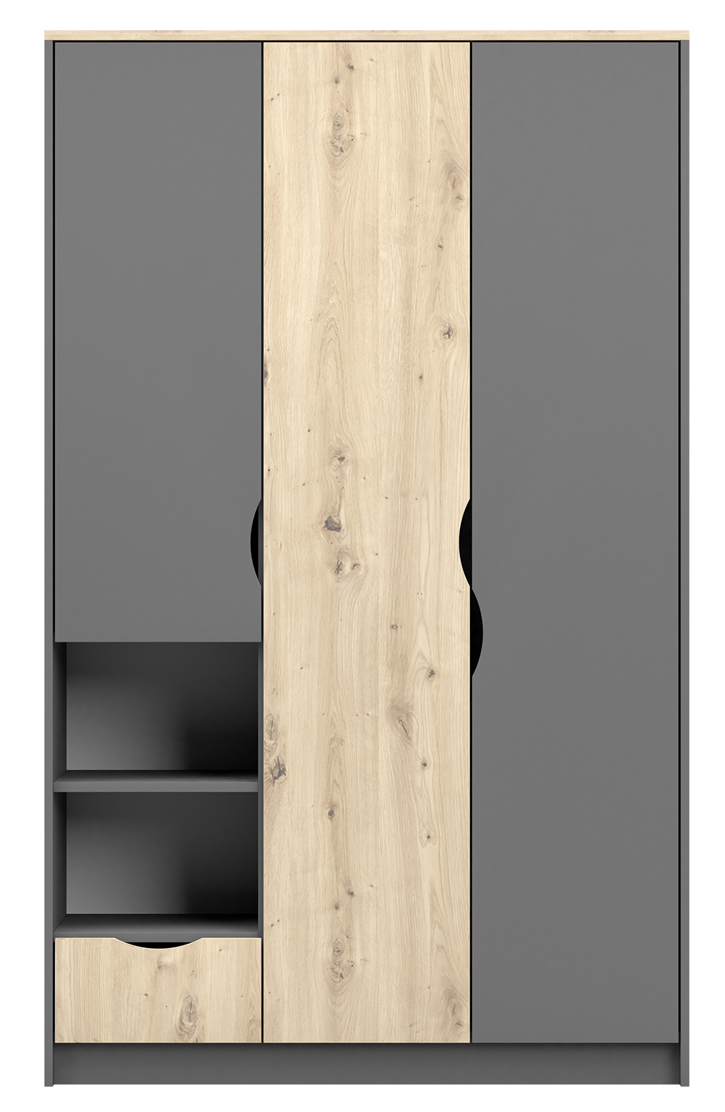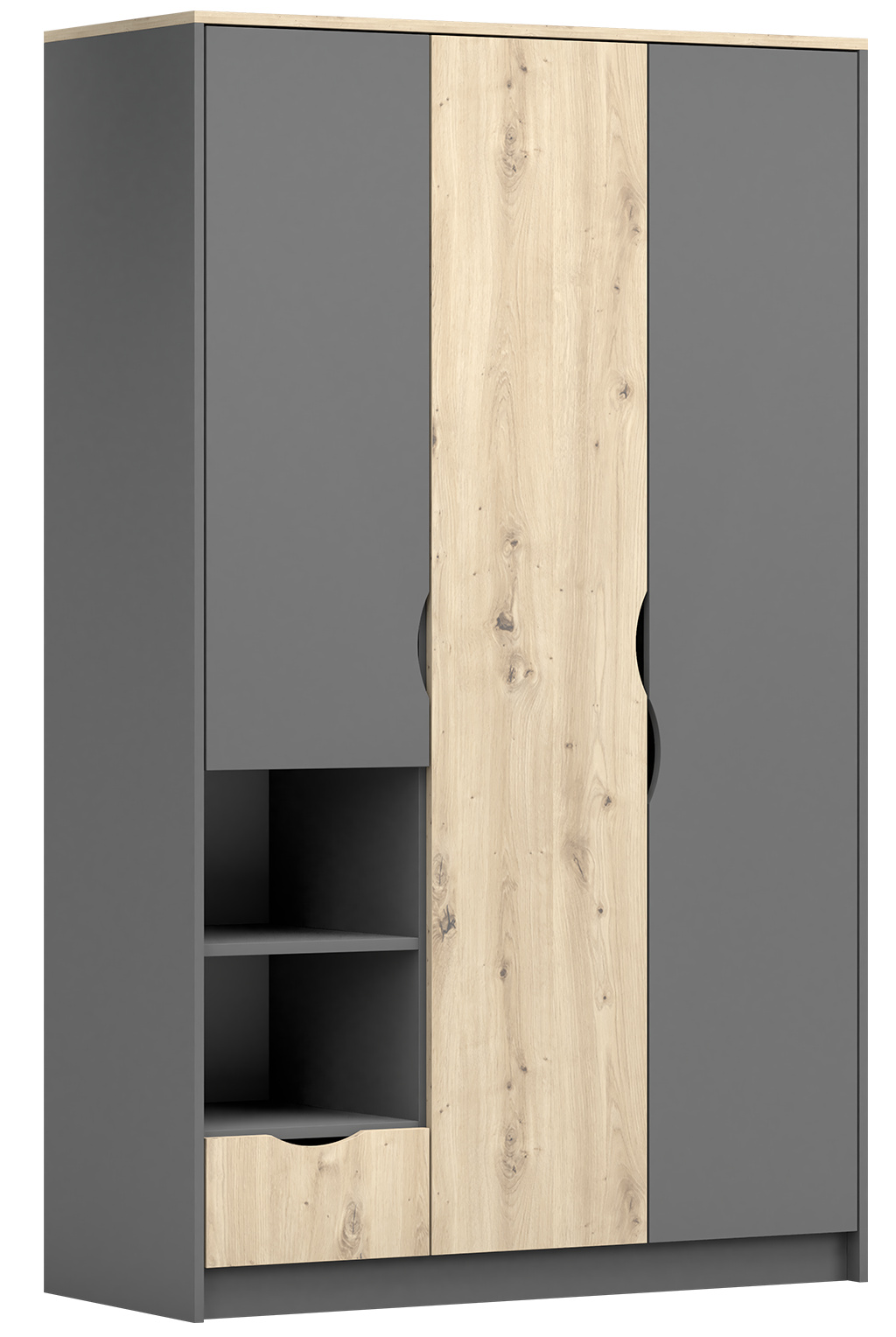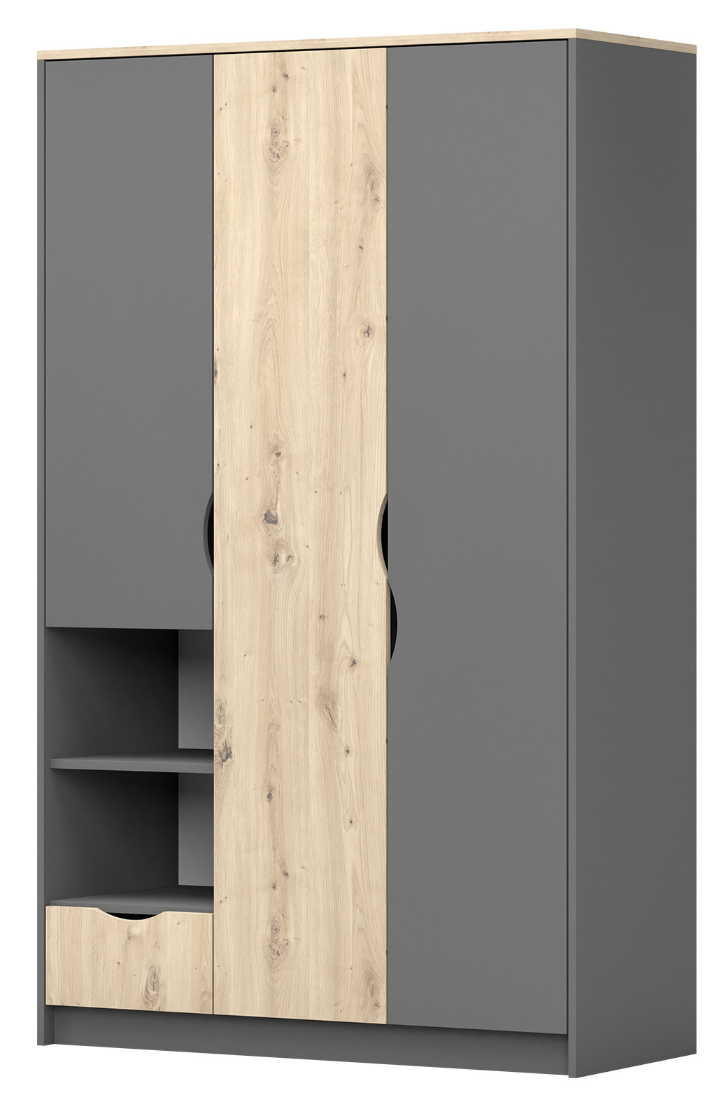 Šatní skříň 1S3D - JOY II 19, Šedá/Dub Artisan