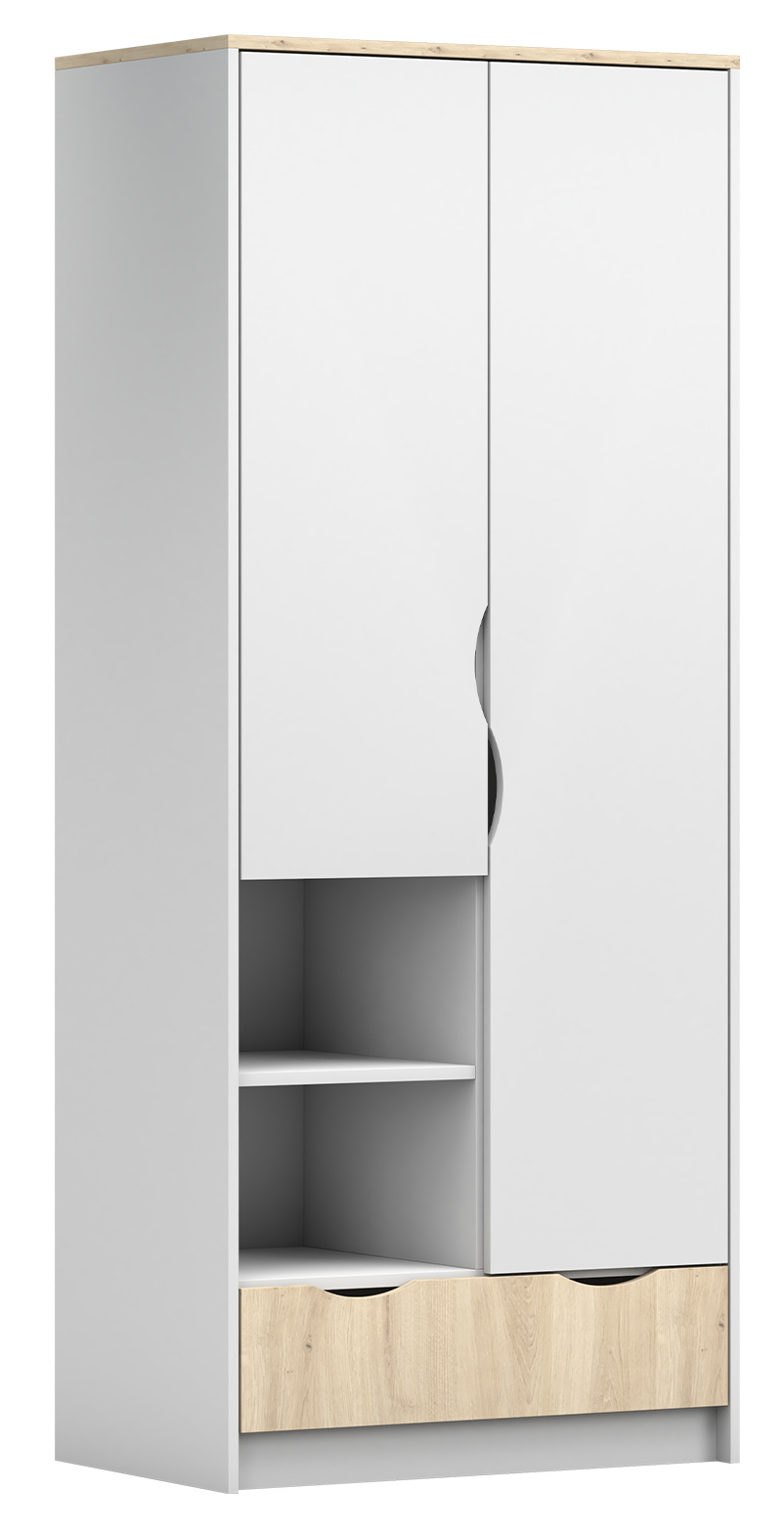 Šatní skříň 2D - JOY I 06, Bílá/Dub Artisan