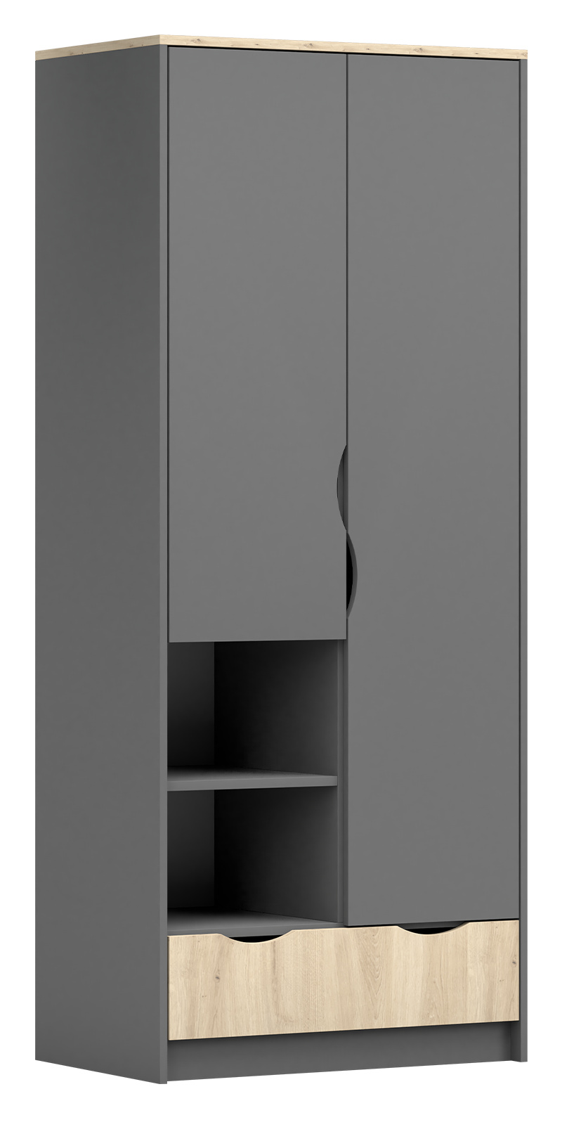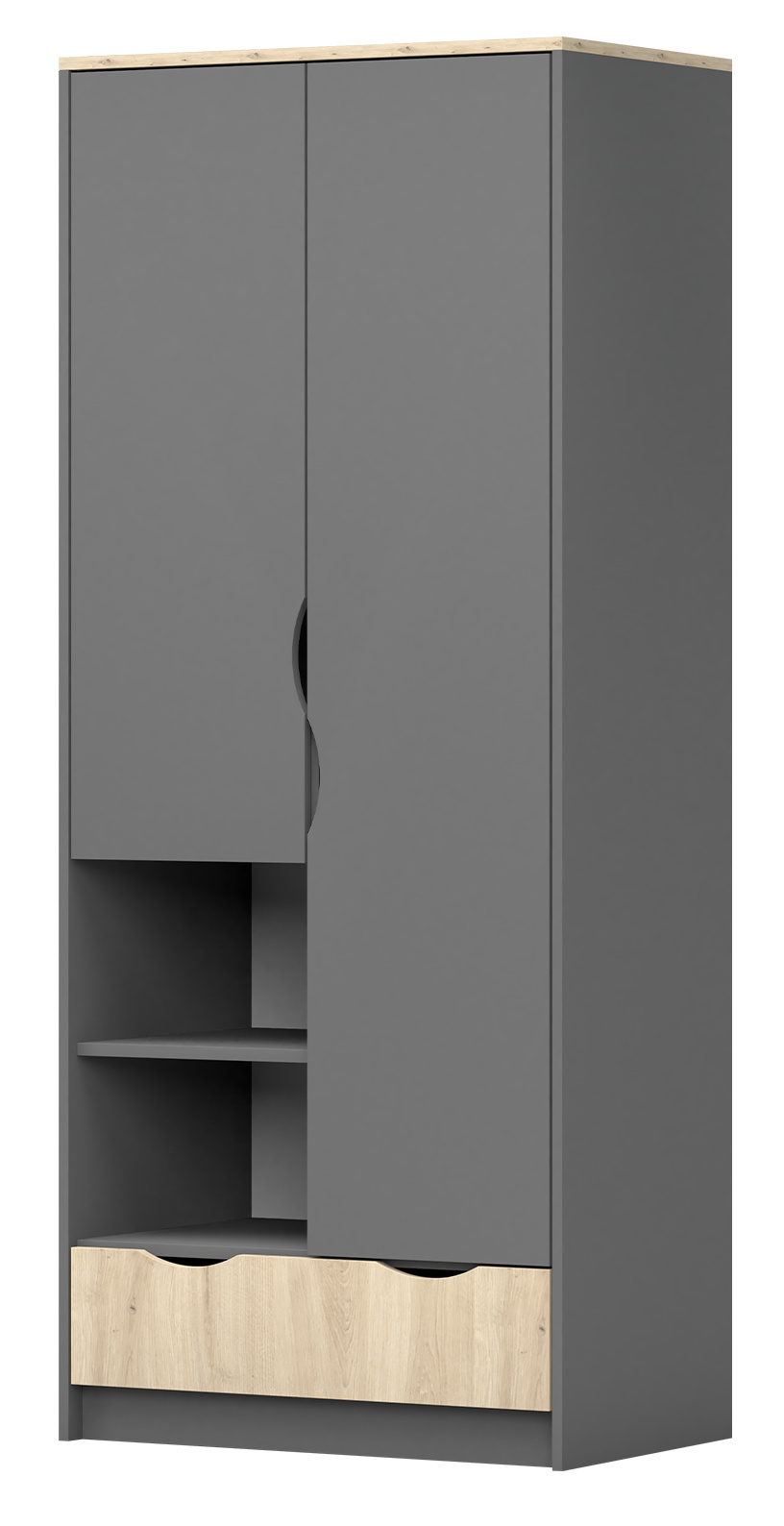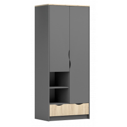 Šatní skříň 2D - JOY II 06, Šedá/Dub Artisan