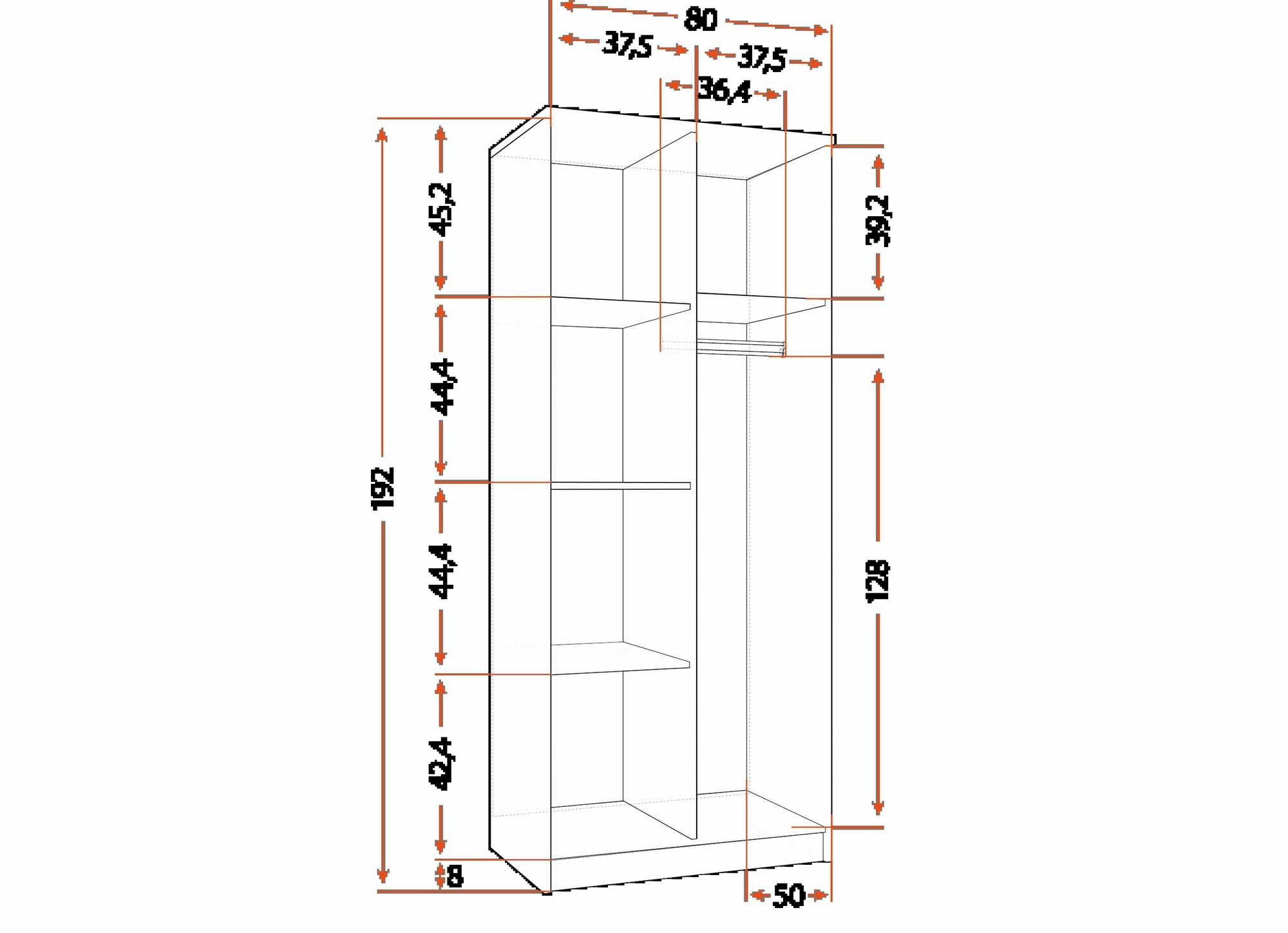 | Typ skříně | 2-dveřová skříň |