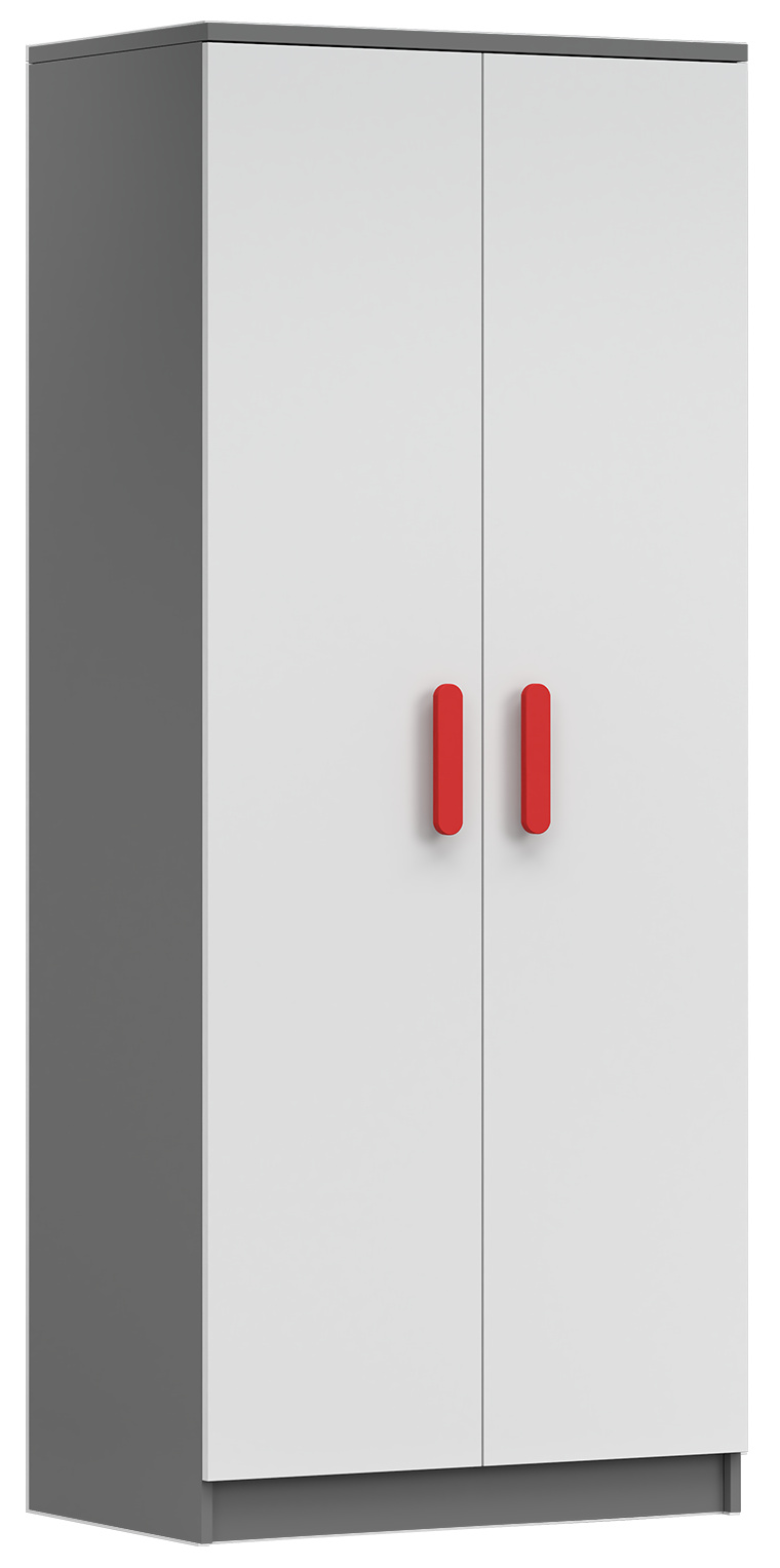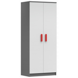Šatní skříň 2D SMYK II - 06, Šedá/Bílá/Červená