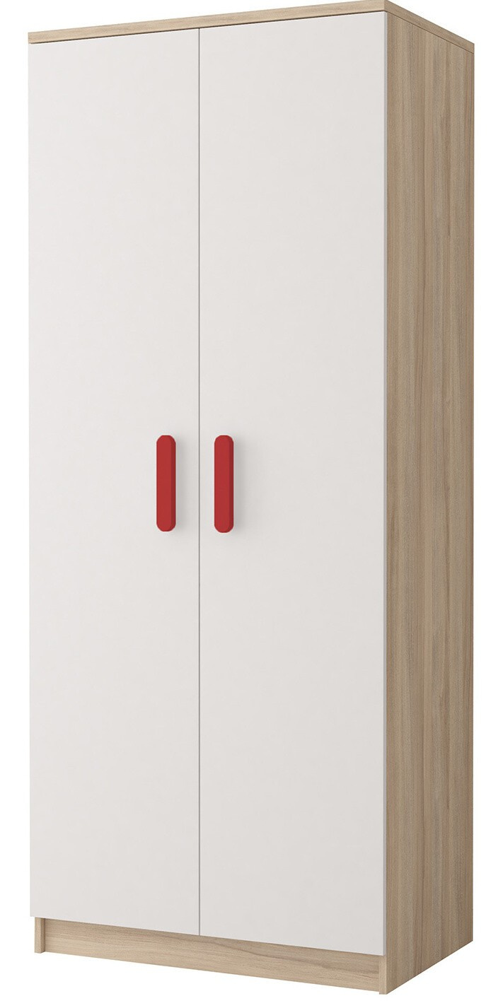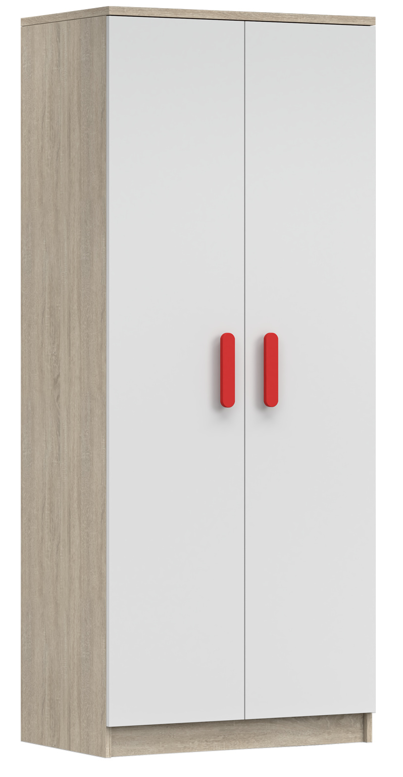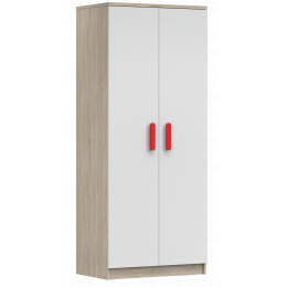 Šatní skříň 2D SMYK III - 06, Dub Sonoma/Bílá/Červená