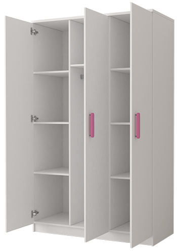 Šatní skříň 3D SMYK I - 19, Bílá Mat/Růžová