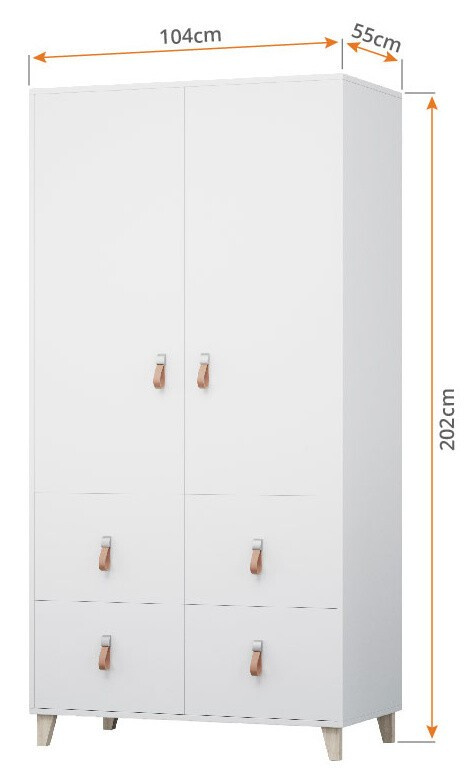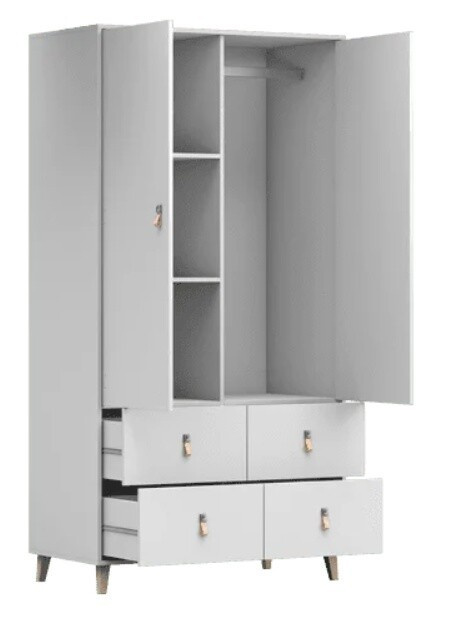 Šatní skříň 4S2D - FIGO 06, Bílá/Přírodní