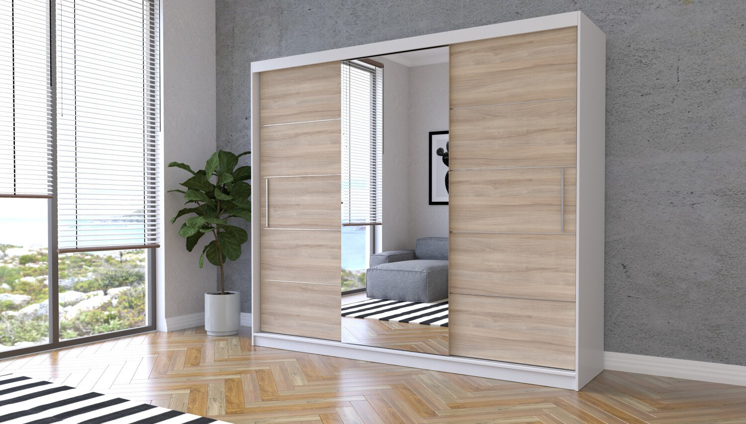 Šatní skříň ALBA se zrcadlem, Bílá mat/Sonoma